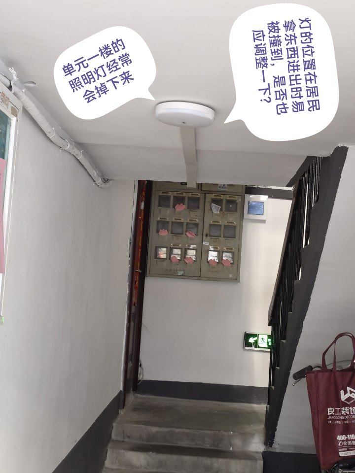 拱墅区潮鸣街道回复:针对居民建议,社区联系施工方现场查看并排查,已对脱落的弱电管套进行加固处理,已检查未发现“安全楼梯”标志、照明灯脱落。经了解,小区旧改方案是经过征求居民意见形成的,小公园长廊也是按图施工。关于旧改情况,也欢迎居民到社区提出好的意见建议,供居民共同探讨、共同决定。