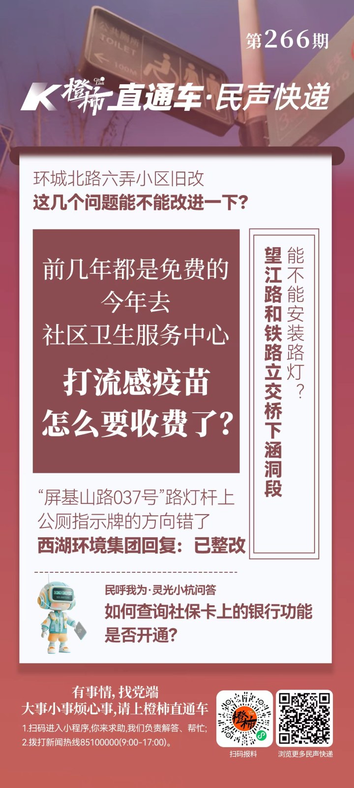 “12345”政务服务热线与“橙柿互动”联合打造的“民呼我为·灵光小杭”智能问政系统已正式上线。打开橙柿互动App,点击首页中的“灵光小杭”卡通小图(上图),即可进入“民呼我为·灵光小杭”问答页面,在对话框中输入问题,“灵光小杭”将第一时间给出权威答复。