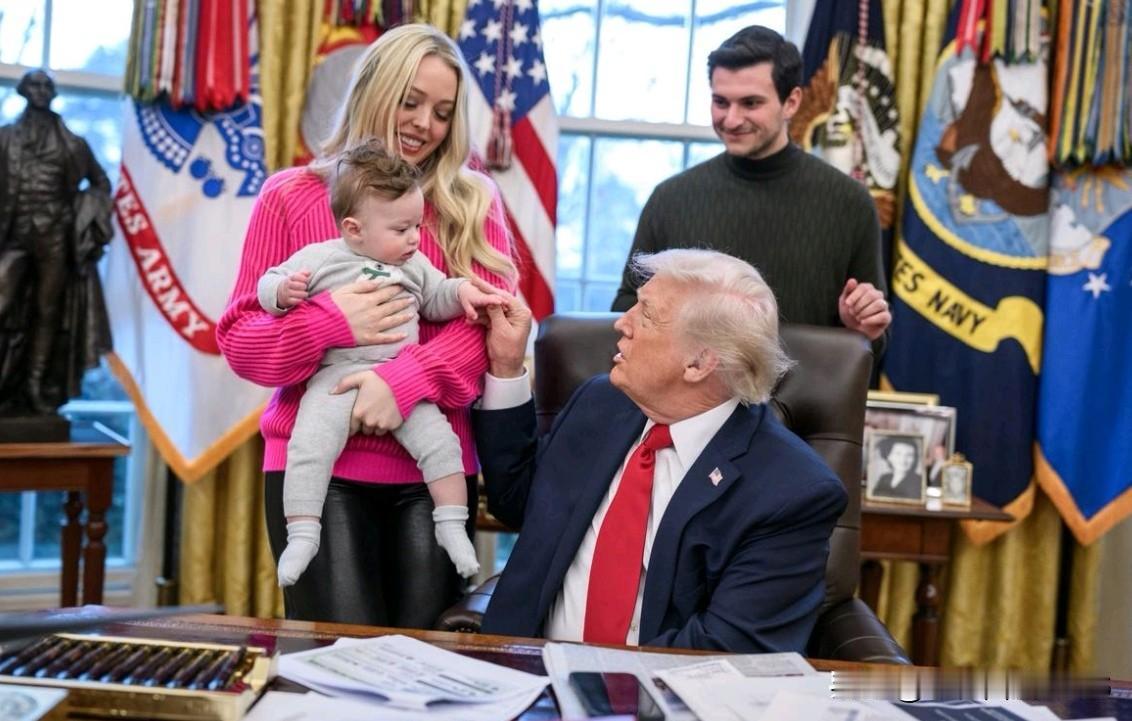 近日,美国总统特朗普的小女儿蒂芙尼与丈夫携不满周岁的儿子亚历山大到白宫看望特朗普,上演了一幕温馨的家庭团聚画面。这个还不会走路的小家伙,迅速让庄严的白宫西翼变成了他专属的“游乐场”。 画面中,活泼好动的亚历山大不仅兴奋地与姥爷特朗普握手,更在白宫会议室的宽敞桌面上自在爬行,探索这个对绝大多数美国人而言神秘而遥远的地方。他天真无邪的笑容与好奇的举动,为气氛严谨的政治空间带来了难得的轻松与欢快。 小朋友玩得不亦乐乎,完全没被周围的环境所震慑。这一场景在社交媒体上引发了温馨的讨论。许多网友感叹,绝大多数人终其一生也难以踏入白宫核心区域,而亚历山大尚在襁褓之中,便已将其视为可以嬉戏的“姥爷家”。这种因家庭纽带而带来的独特经历,生动展现了政治人物家庭生活平凡又特殊的一面。 尽管外界常聚焦于政治人物的公众形象,但此刻,白宫会议桌暂时褪去了全球决策中心的色彩,只是一位姥爷看着小外孙快乐爬行的普通时刻。这份跨越年龄的亲情互动,为公众呈现了一段难得一见的柔软而充满人情味的白宫片段。