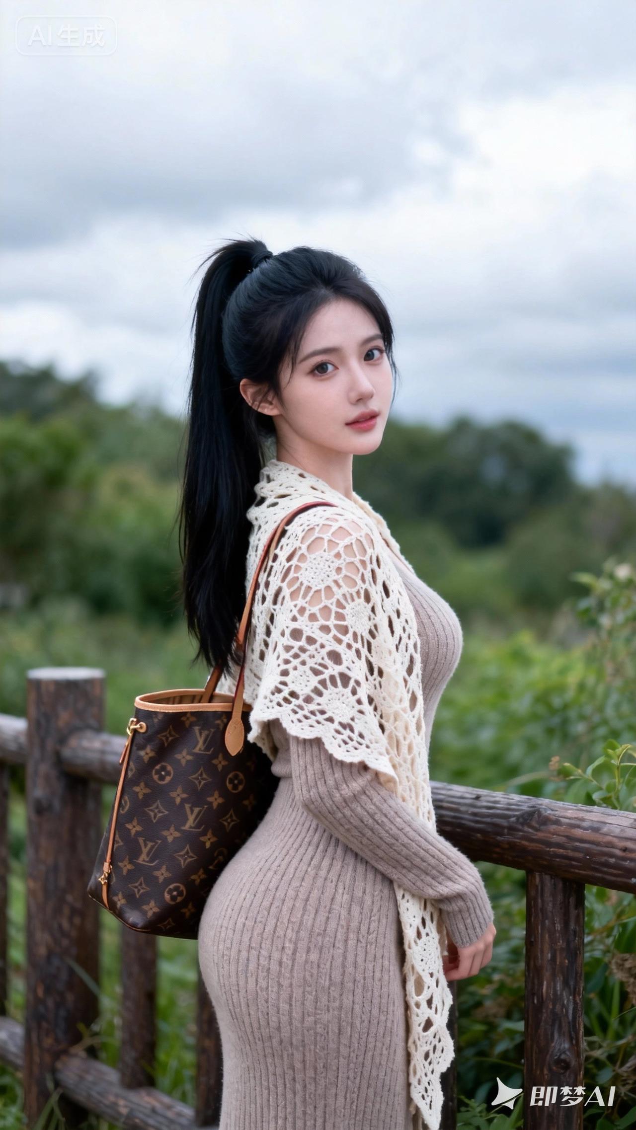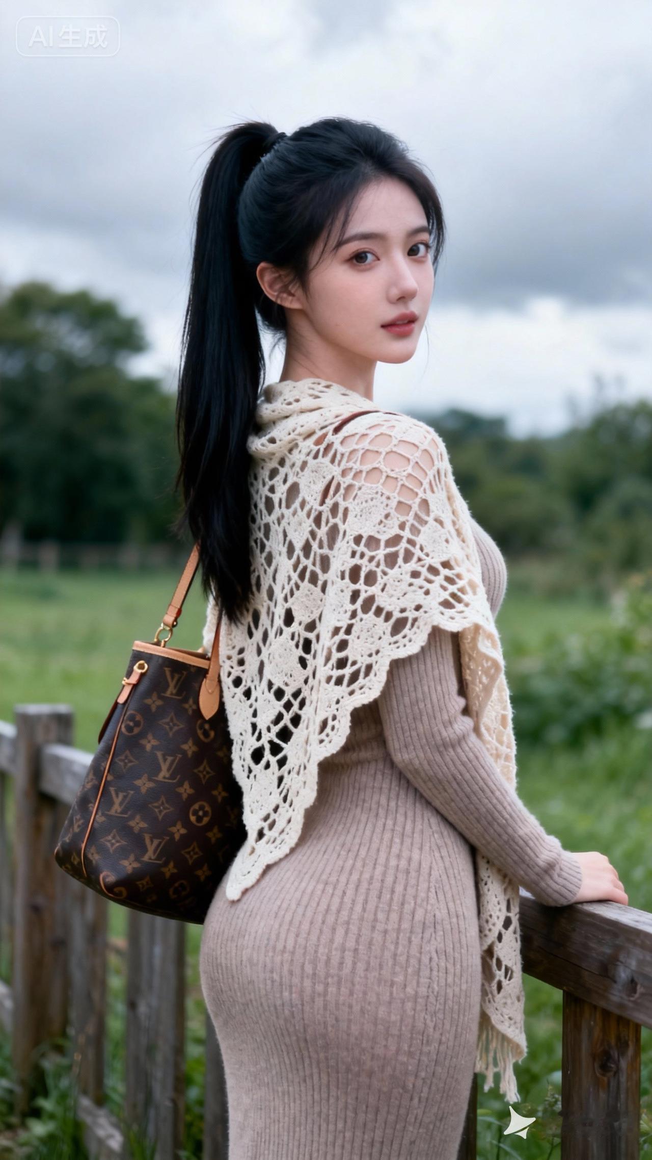 《郊径寻幽》晴郊翠蔓覆荒蹊,素袂轻裁云半低。发绾春山风欲软,腰萦柳线露初晞。
