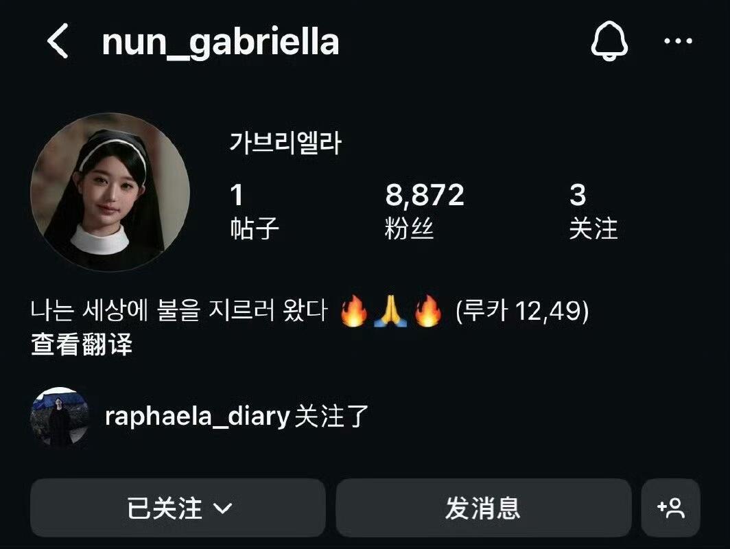 柳智敏张元英合作广告的修女角色ins互关了 是宿敌也是妻子张元英柳智敏合作