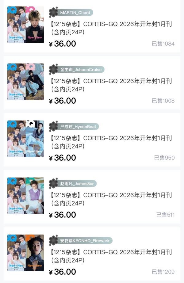 Cortis GQ杂志开年封一月刊首日销量拉表赵雨凡/金主训/Martin/严成玹/安乾镐