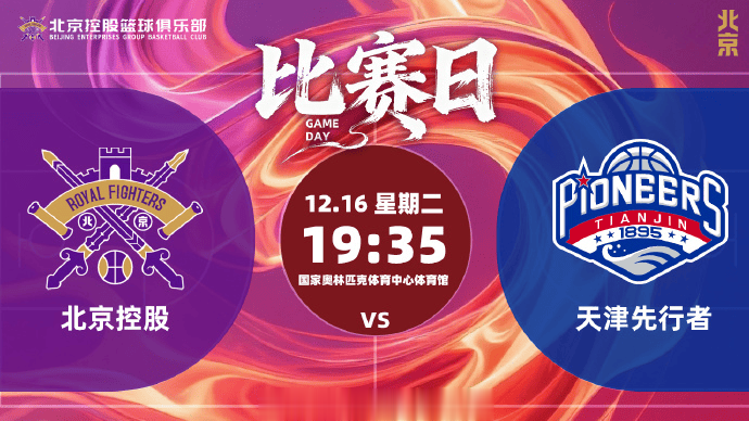 配文道:2025年12月16日19:35,在国家奥林匹克体育中心体育馆,北控男篮将迎战天津男篮。