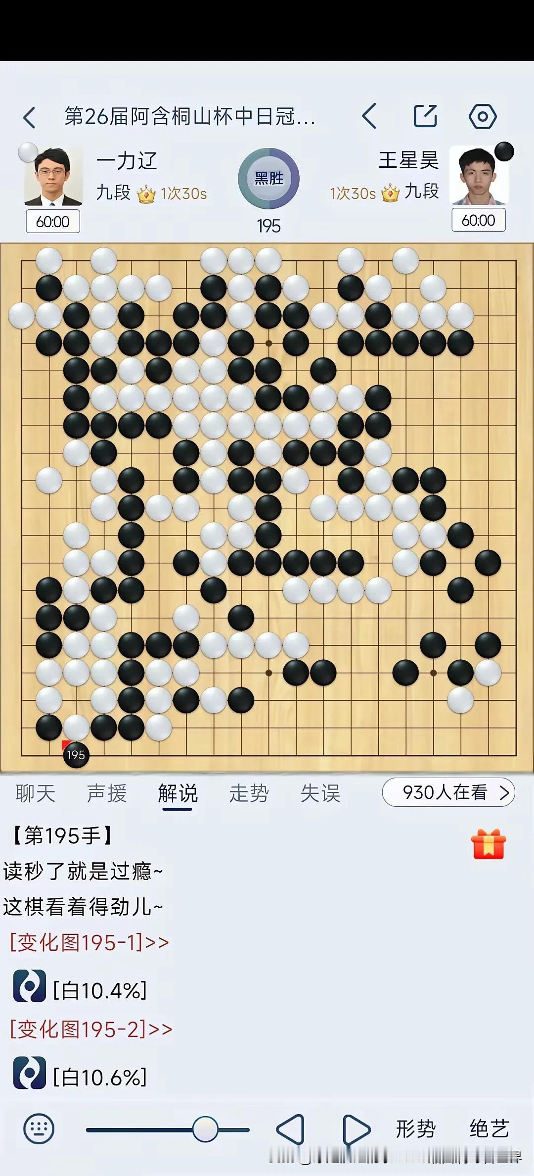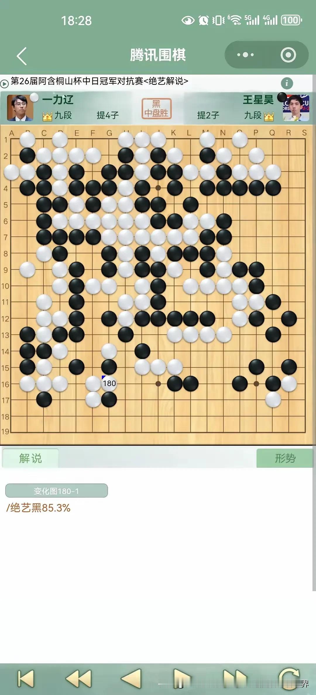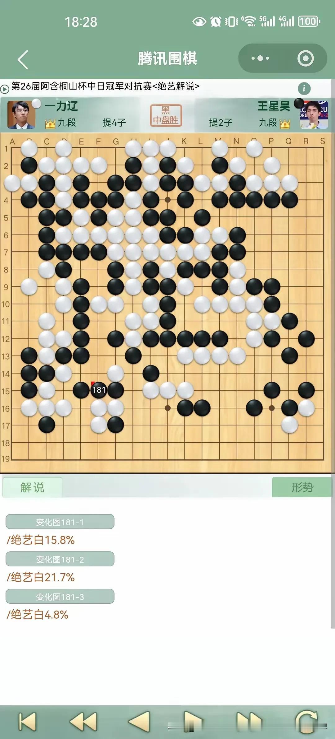 今天下午第26届阿含•桐山杯中日围棋快棋冠军对抗赛由中国年轻棋手王星昊对决日本棋手一力辽,棋局起伏跌宕,一力辽九段虎头蛇尾,前半盘占据优势,后半盘忙中出错痛失好局被逆转,王星昊获得冠军! 阿含•桐山杯中日围棋快棋冠军对抗赛由日本阿含集团出资举办了26届,这是最后一届,感谢这些热爱围棋的日本人的付出,中日围棋交流应该不受政治影响,希望双方继续友好交流。 向热爱支持围棋的日本的阿含集团致敬!