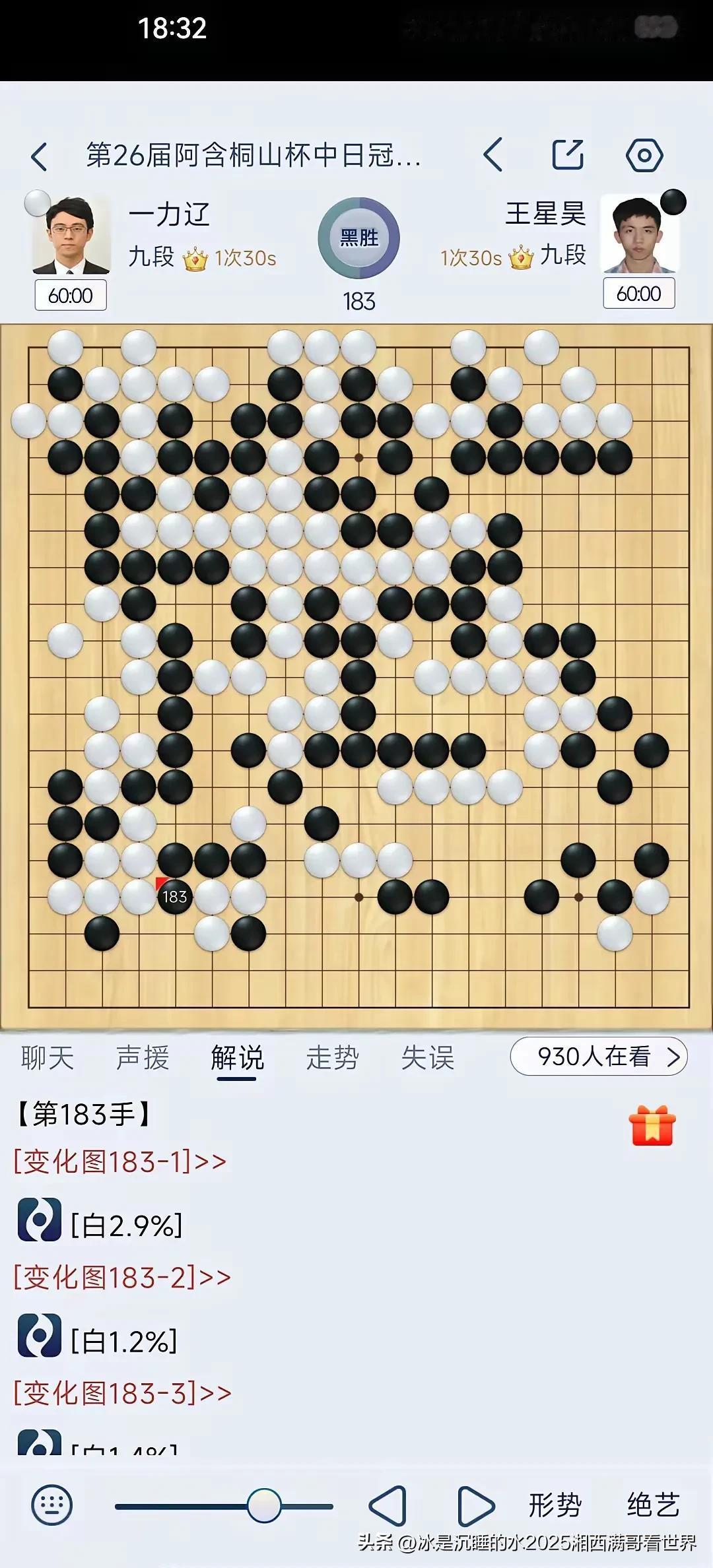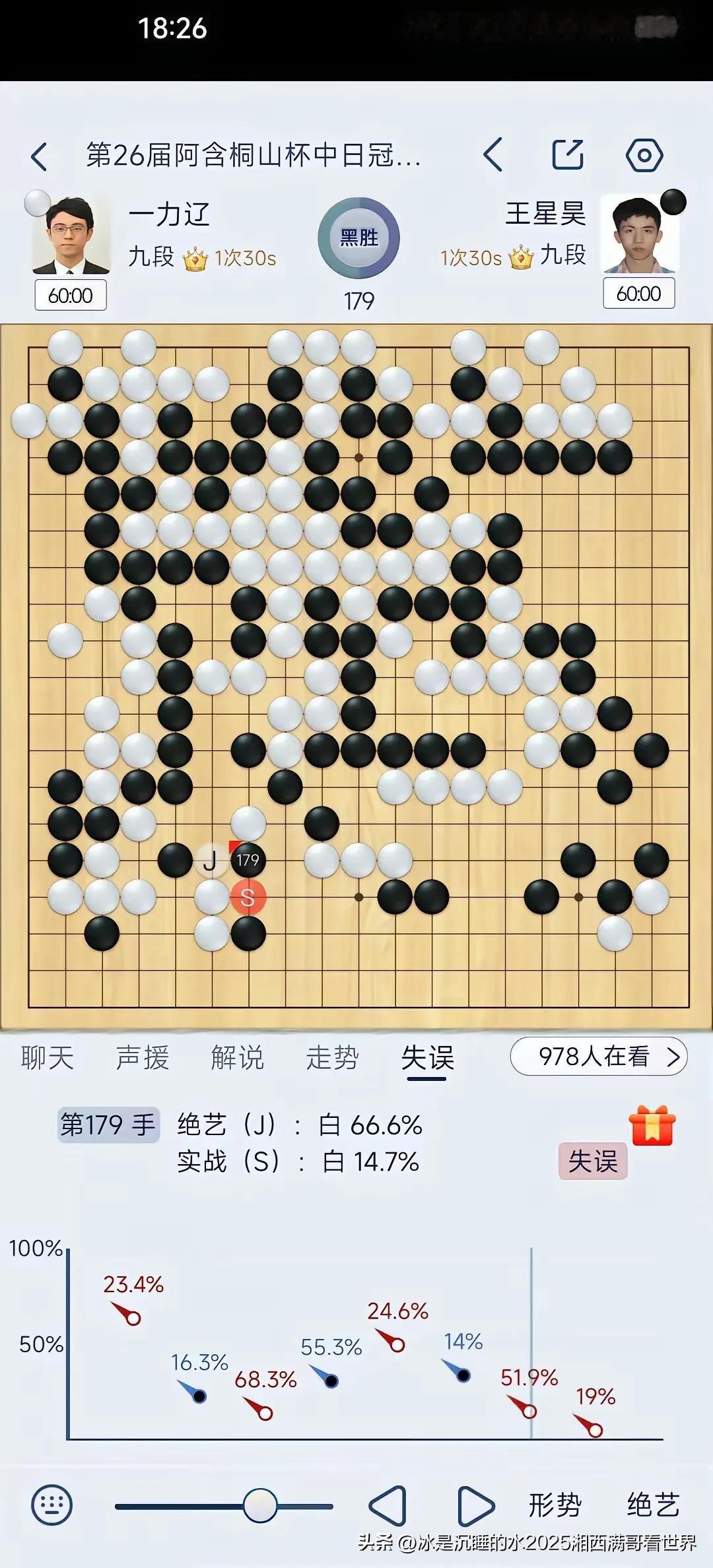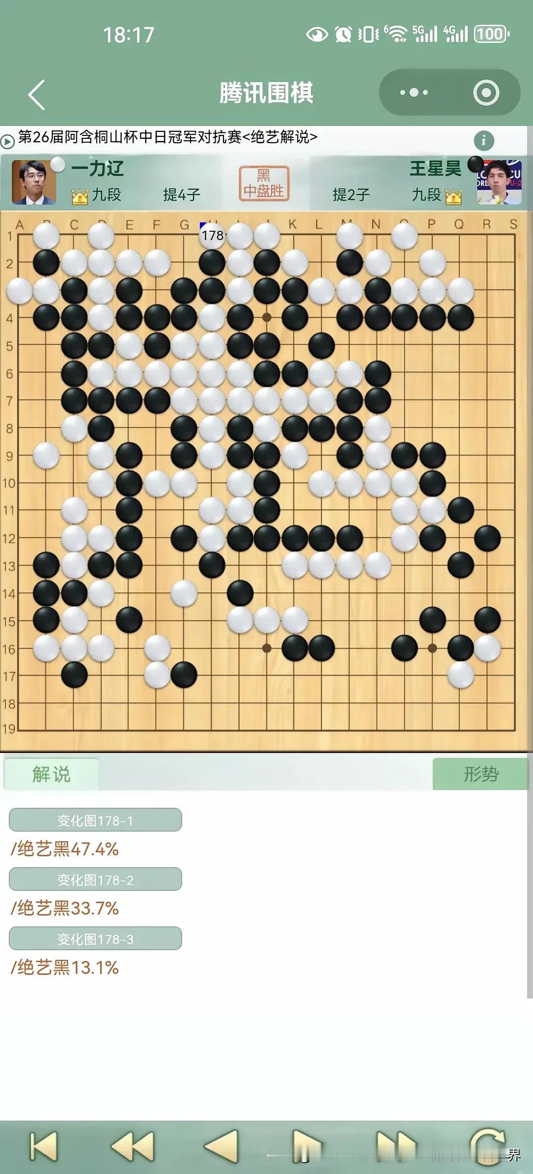 今天下午第26届阿含•桐山杯中日围棋快棋冠军对抗赛由中国年轻棋手王星昊对决日本棋手一力辽,棋局起伏跌宕,一力辽九段虎头蛇尾,前半盘占据优势,后半盘忙中出错痛失好局被逆转,王星昊获得冠军! 阿含•桐山杯中日围棋快棋冠军对抗赛由日本阿含集团出资举办了26届,这是最后一届,感谢这些热爱围棋的日本人的付出,中日围棋交流应该不受政治影响,希望双方继续友好交流。 向热爱支持围棋的日本的阿含集团致敬!