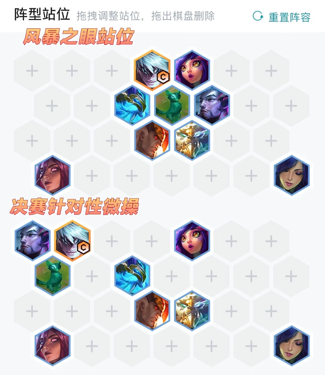 通用:利滚利、D到上头、摆烂等经济类海克斯,小巨人、代谢加速器等苟分海克斯、新人入队等。