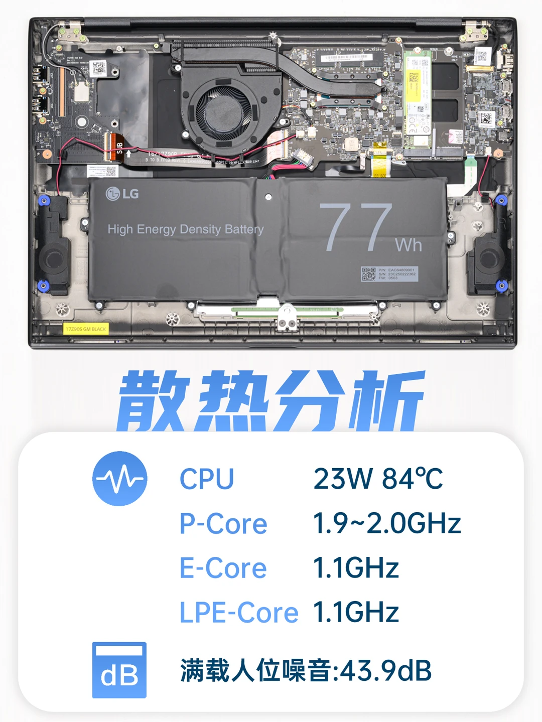 从更新幅度来看,2024款LG gram 17的提升主要是处理器,由于模具没有变,所以重量、接口和屏幕等表现都和去年基本保持一致。除此之外,电池甚至还小了一点,从80Wh变成77Wh,原因不明。[黑薯问号R]