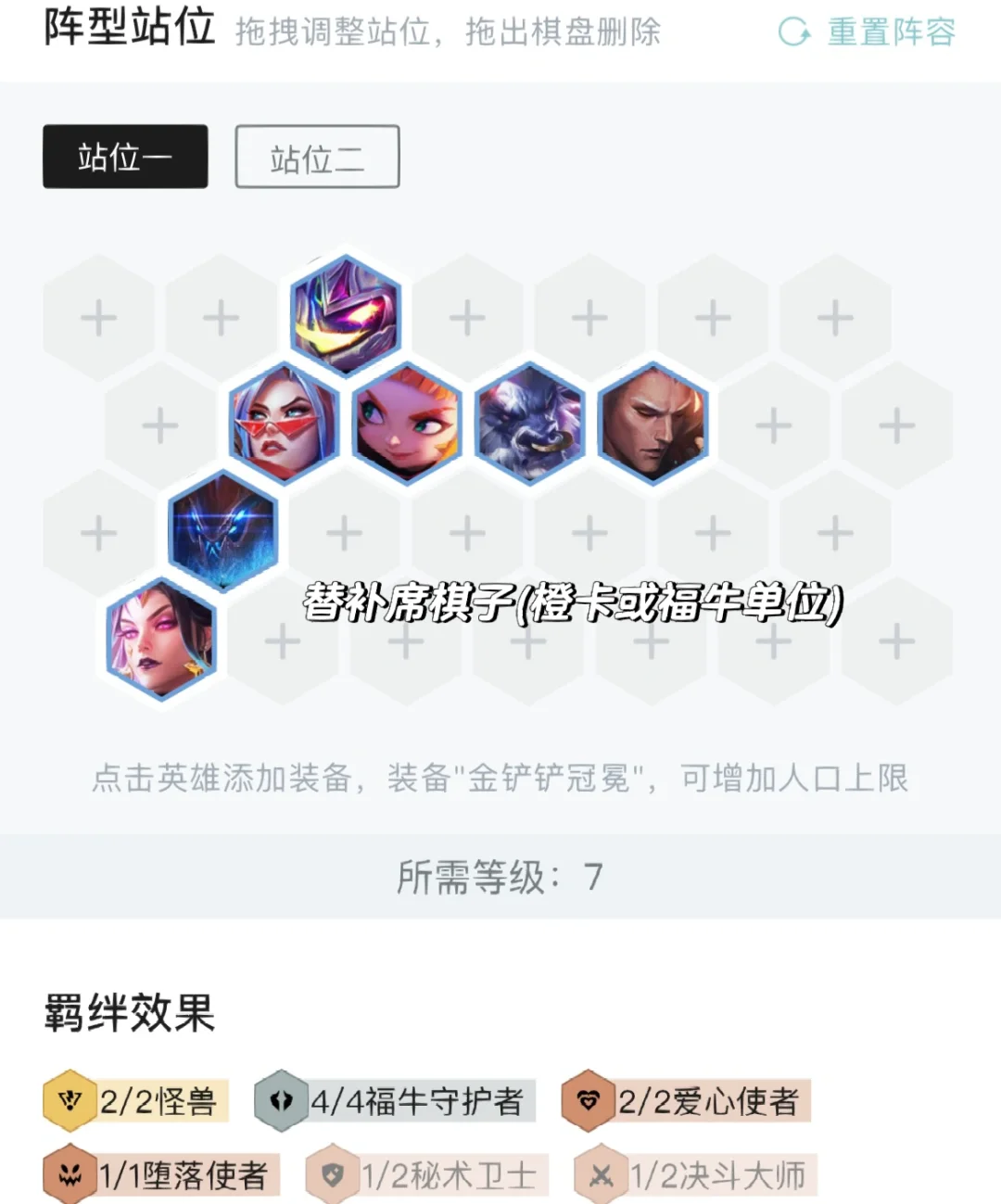 备战席适合放的棋子是稻草人螃蟹、福牛牌,福牛牌有无敌能抗挺久的。