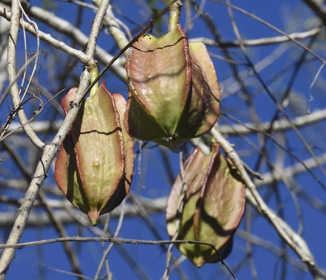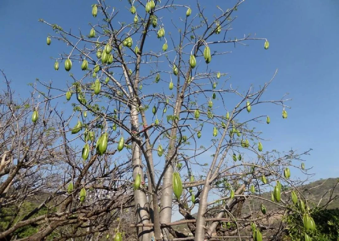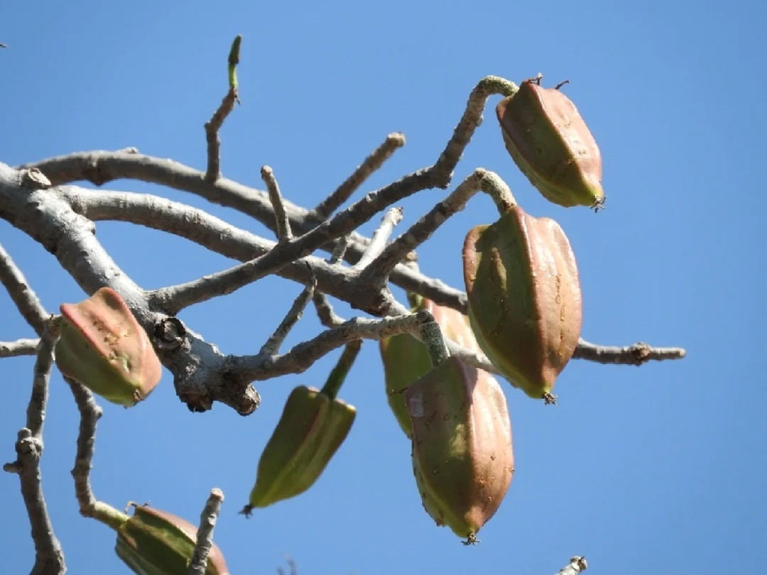 墨西哥山木瓜、墨西哥蓝花楹Jacaratia mexicana 'Maroon' 一个小的,相当稀疏的分支的,干燥的落叶乔木很少超过10米高圆锥形的长茎上有木髓状的树干和大的掌状叶子。雌树结出长方形、成角、成脊、略带栗色、木瓜状的果实,果肉黄橙色,可食用且美味。墨西哥卡拉提亚原产于从墨西哥南部到尼加拉瓜的低海拔和中海拔1500米的干燥森林中。虽然在当地栖息地中仍很常见,但在种植方面几乎不得而知。在干燥的热带或温暖的地方效果最好温带的气候。