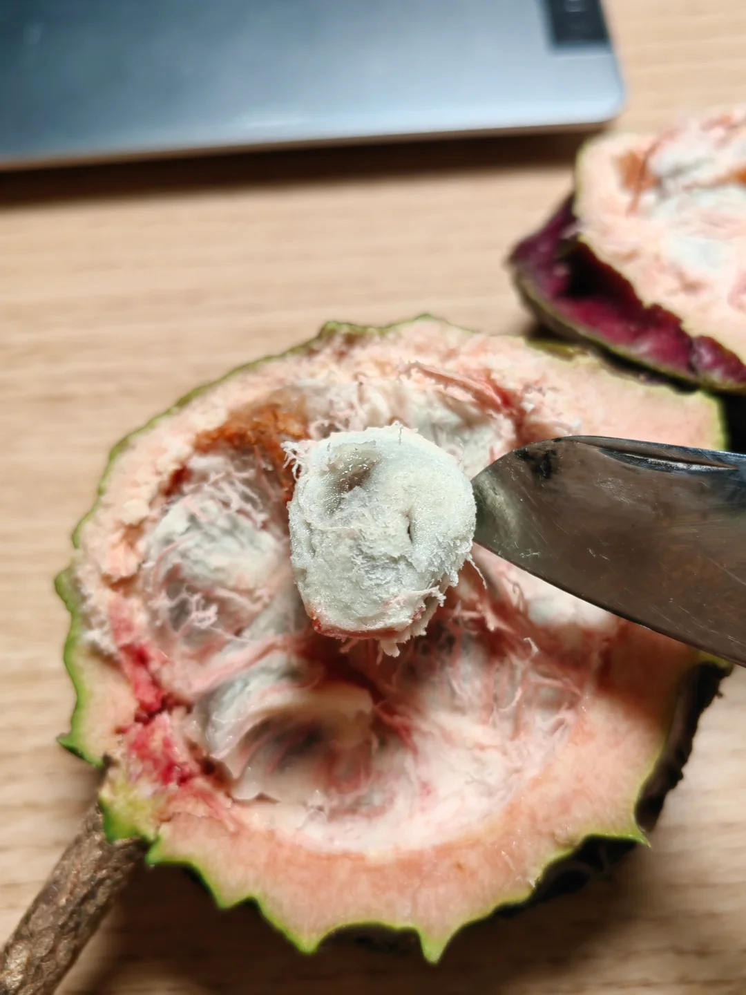 马槟榔的种子吃起来先苦后甜,并且嚼食种子后半个小时之内喝水都是甜的!