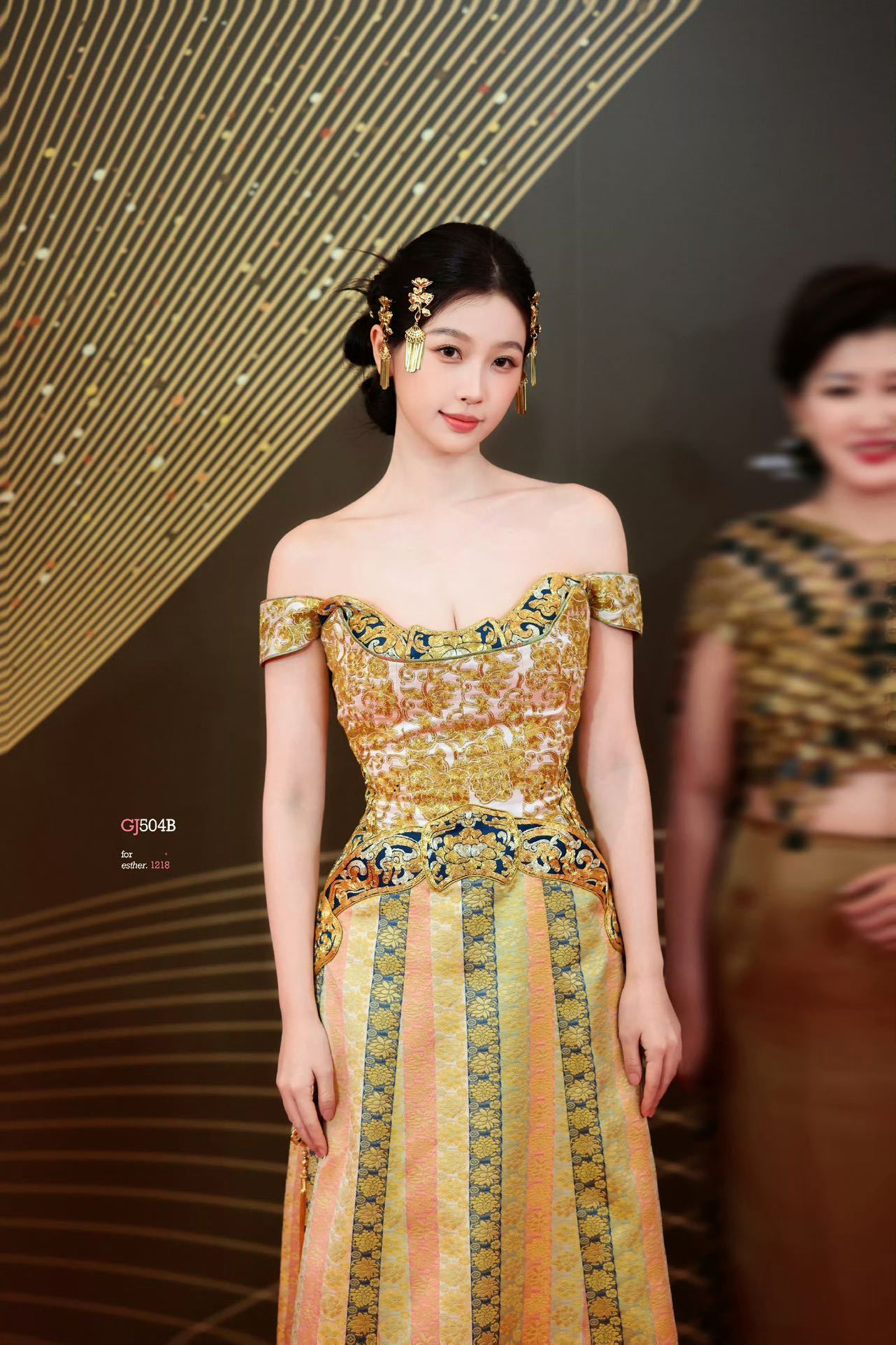 云为衫顶号虞书欣来了 睡晚了?真有些恍惚了!今天欣欣泰国活动的造型梦回云为衫,这金色配饰好像大婚的造型,好美~