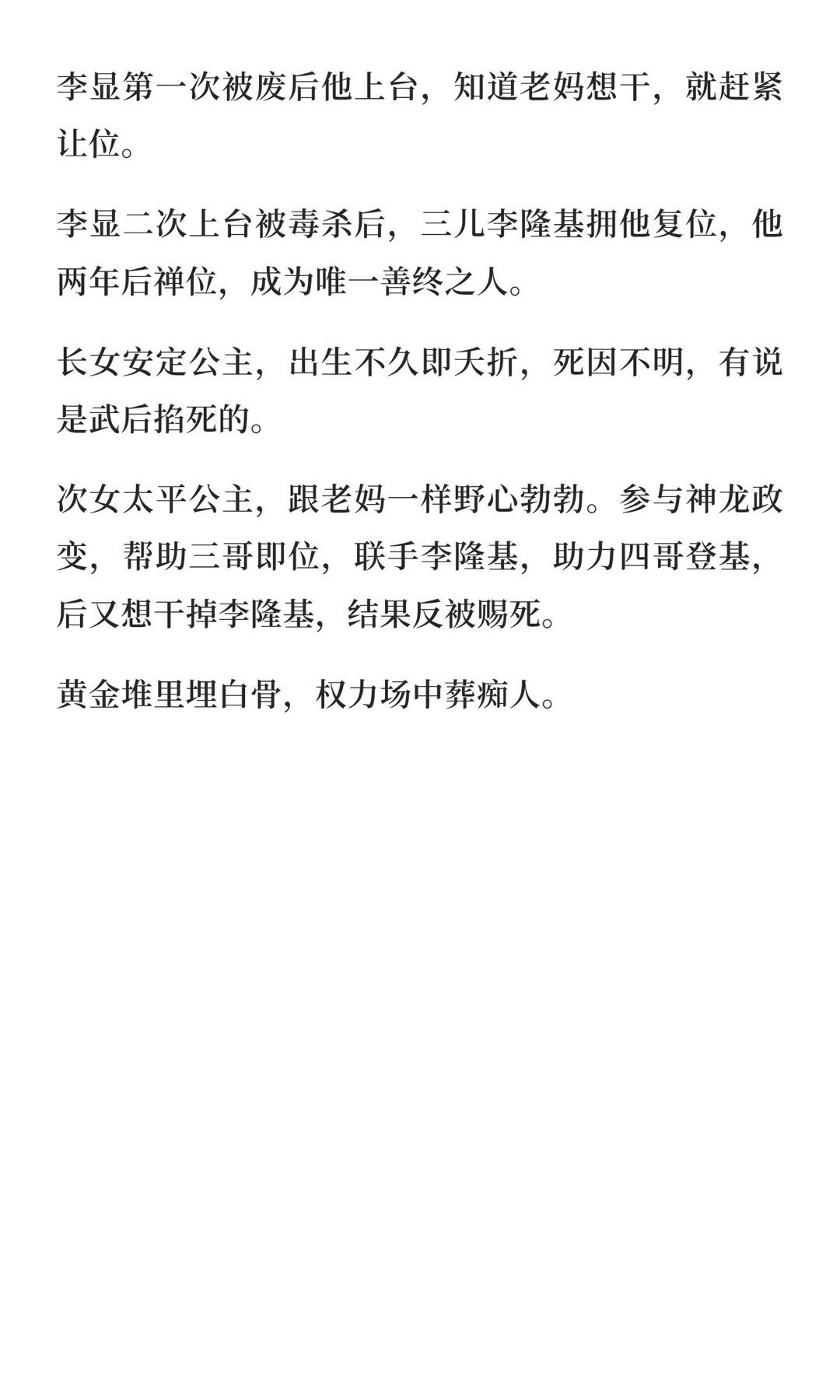 武后之四子两女 | 黄金堆里埋白骨,权力场中葬痴人。