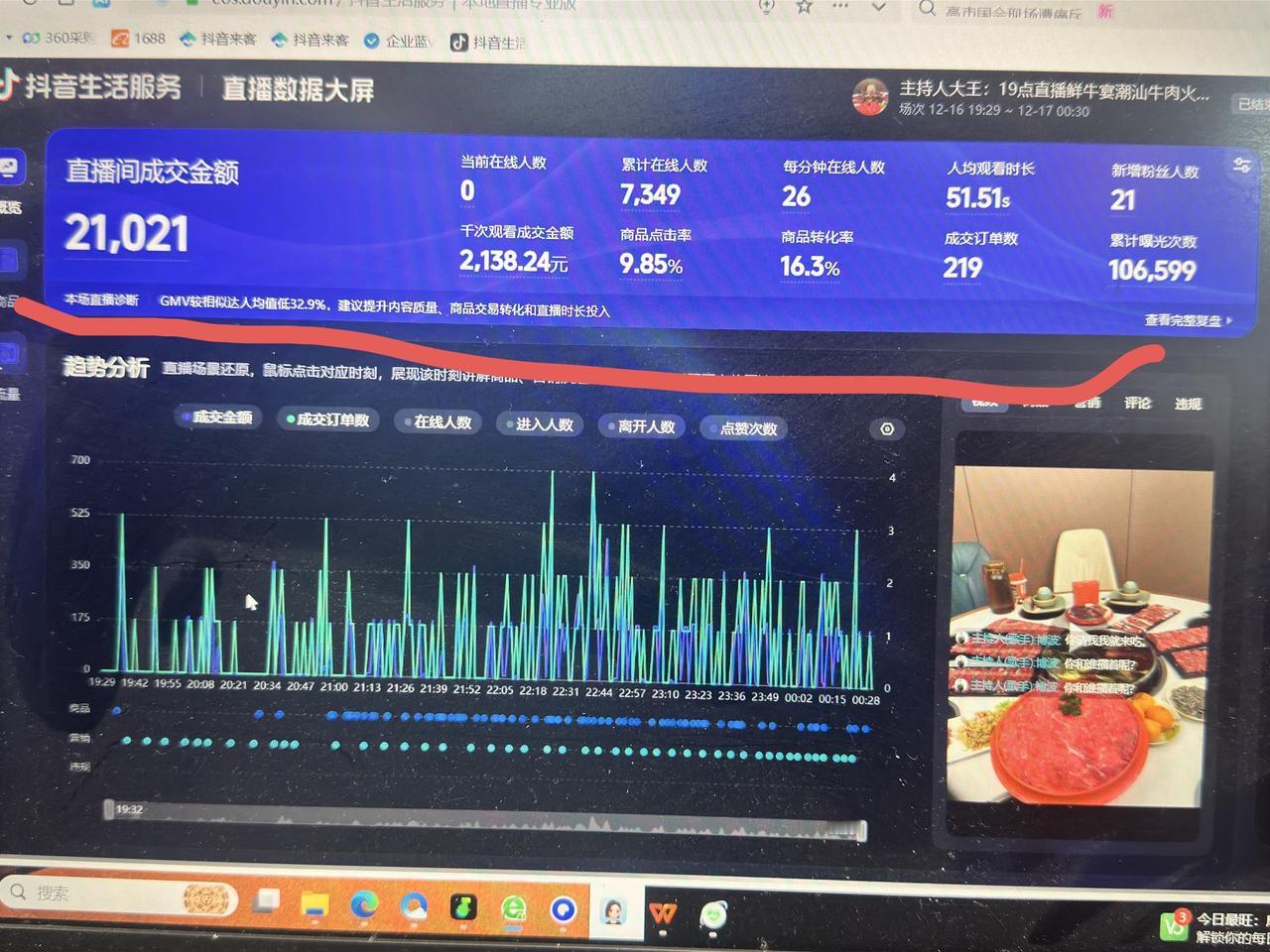 本场直播冲破2.1万,共计219单,感谢大家支持强烈推荐 上热搜 直播