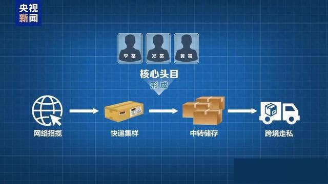 犯罪团伙是如何招揽客户,是如何将血样走私出境的呢?侦查中专案组发现,走私团伙的揽客和运输手法十分隐蔽,形成“网络招揽-快递集样-中转储存-跨境走私”的完整黑色产业链。
