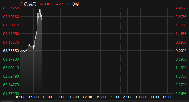 国际现货白银站上65美元/盎司关口 续创历史新高