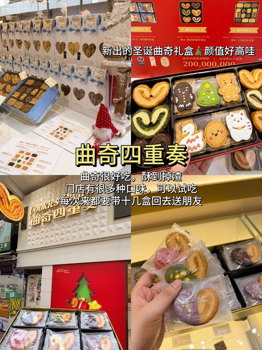 📍曲奇四重奏:来香港朋友一定要买的蝴蝶酥和圣诞礼盒~路过就被店里的圣诞装饰吸引了!!新出的圣诞礼盒🎄颜值好高哇🥹是原料源自法国的蝴蝶酥🍪ロ味丰富还带了几盒送给朋友做手信~✌️