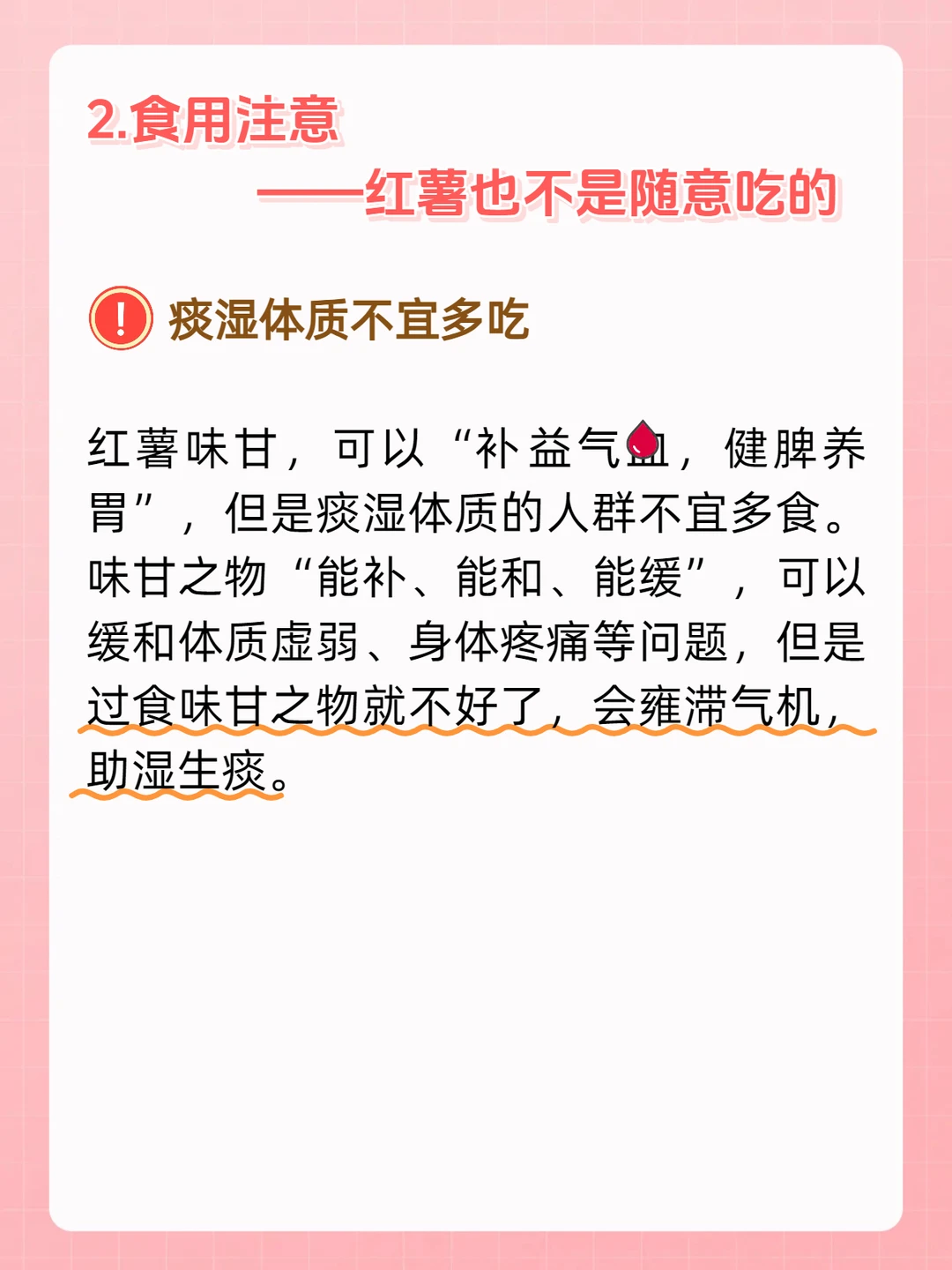 红薯味甘,可以“补益气🩸,健脾养胃”,但是痰湿体质的人群不宜多食。