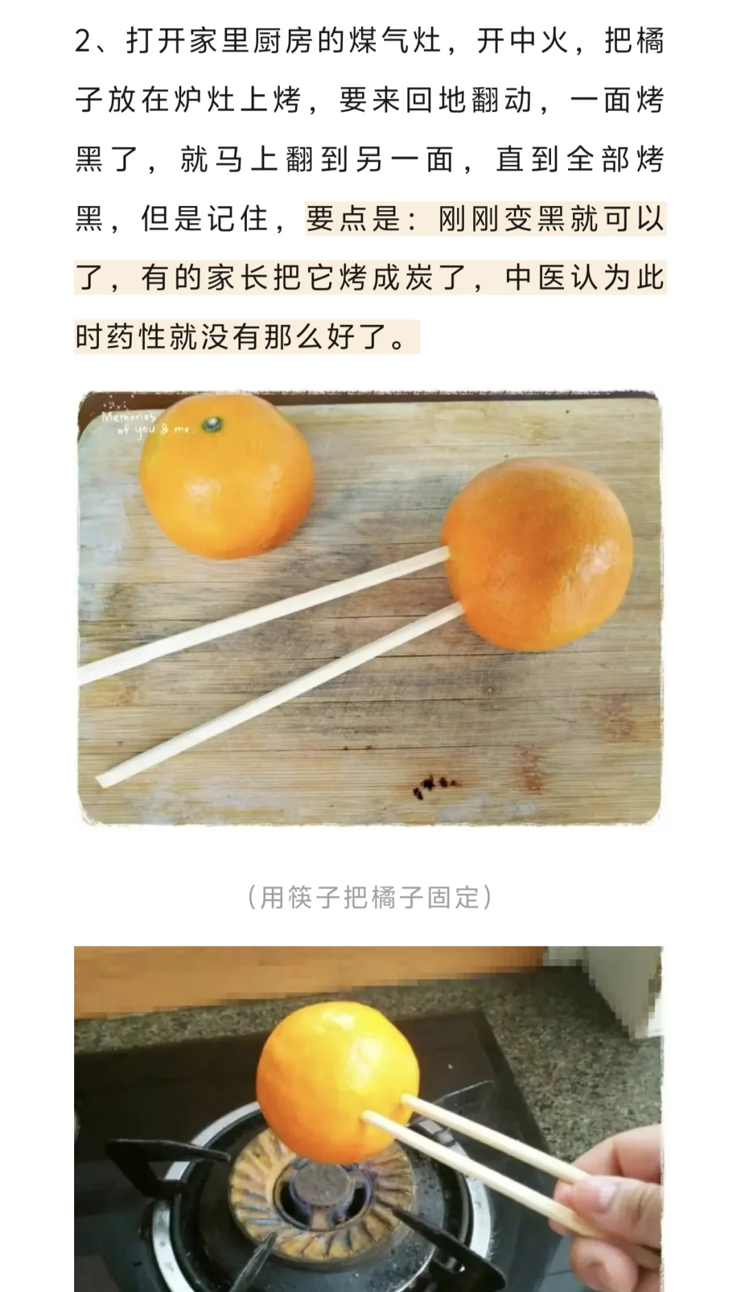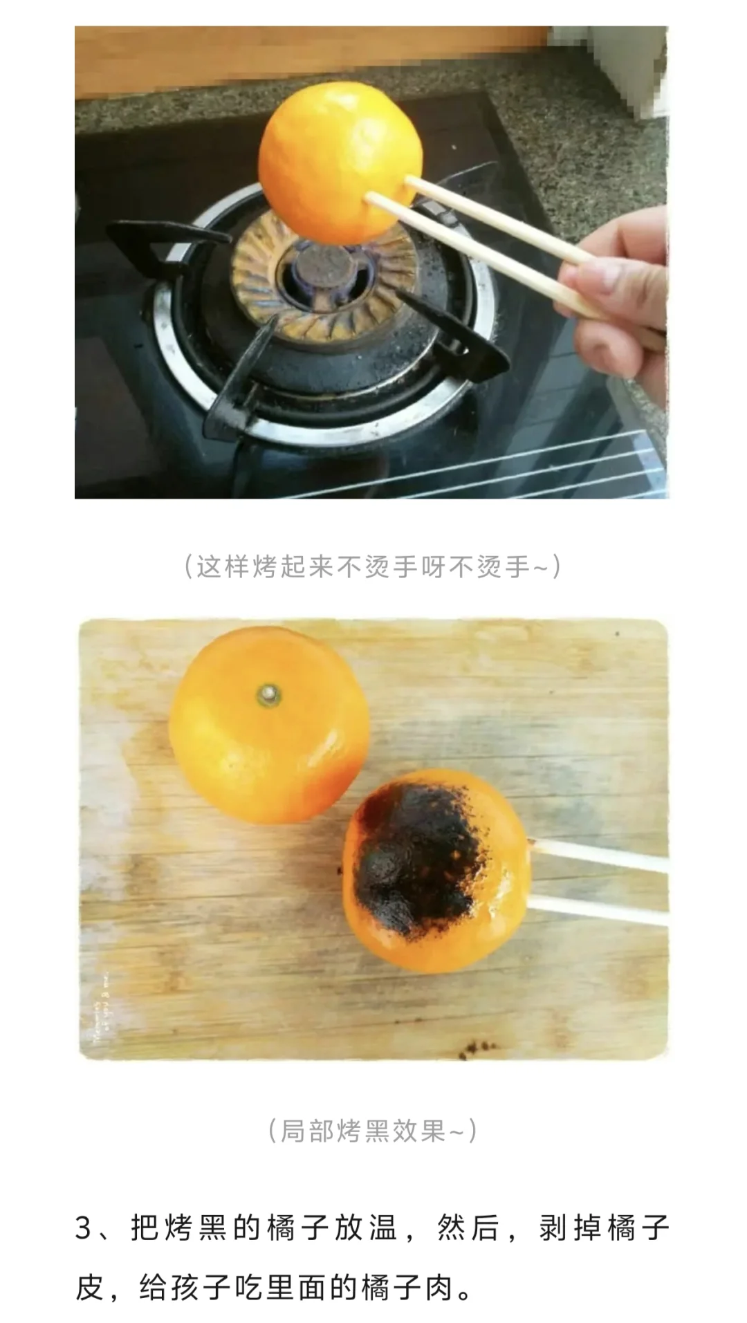 橘子皮的最外一层,中醫叫橘红,性味辛温,具有宣肺散寒的作用。在烤橘子的时候,橘红中的成分,会蒸发到橘子肉上,使得橘子肉带有药性,这样吃橘子,小朋友可以接受,而且比较平和,通过简单的食疗方法,就可以控制孩子的疾病,这是中国人的智慧。