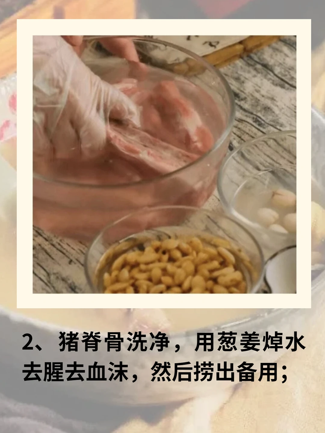 2、猪脊骨洗净,用葱姜焯水去腥去沫,然后捞出备用;