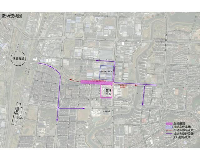 因诸暨市篮球中心安保工作需要,诸暨市公安局交通管理大队决定于2025年12月20日至21日对诸暨市篮球中心周边道路实施分时、分段交通管制,请过往车辆提前选择道路绕行。