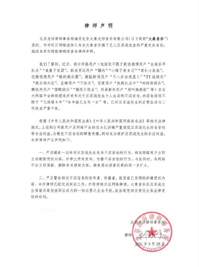 汪苏泷方辟谣 12月17日,网络爆料称汪苏泷“2015年在美国生女、2017年生子”,伴侣为“04年江苏富二代”。不久后,汪苏泷对接账号发文,在爆料帖直接标注“假”字驳斥,明确否认传闻。据悉,早在2021年汪苏泷工作室已发布律师声明,否认“有娃已婚”等爆料。
