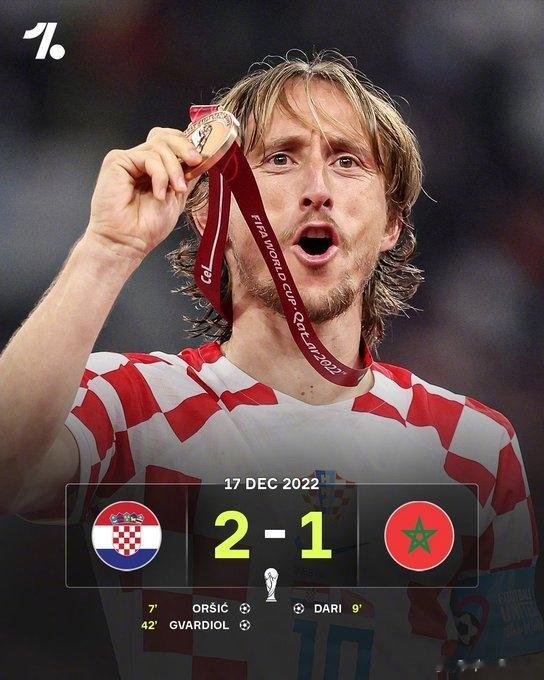 詹俊在社媒写道:三年前的今天,克罗地亚队在卡塔尔世界杯季军争夺战击败伤兵满营的摩洛哥,连续两届世界杯收获奖牌。如今,40岁的莫德里奇仍然是圣西罗球场那道耀眼的亮光,本赛季队内出场次数排名第三。他是不是该悠着点?明年美加墨的“诸神黄昏”他也是主角之一。