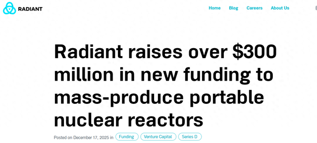 在商业拓展方面,Radiant与全球数字基础设施巨头Equinix达成协议,后者将采购20台核反应堆。