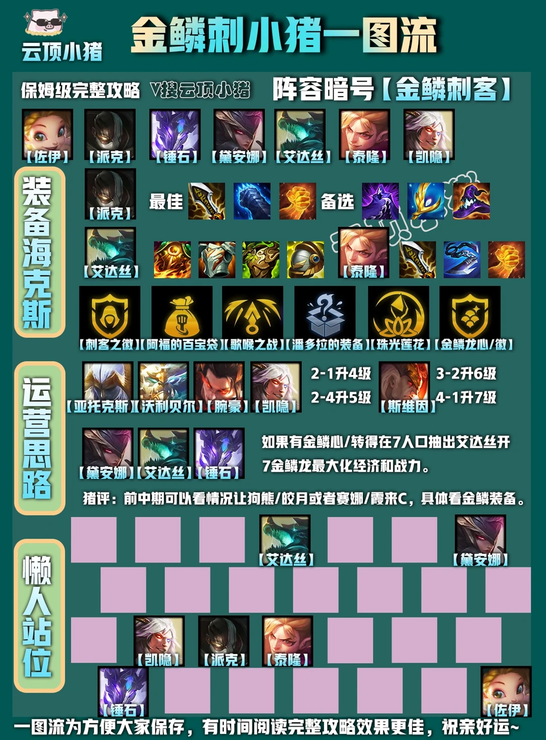 [暗中观察R]今天给大家推荐一套很冷门但实际强度很高的阵容金鳞刺客,思路非常简单,成型稳吃分。