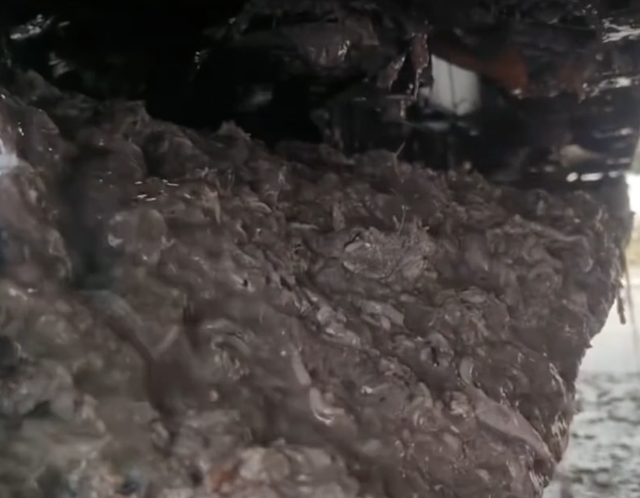 据车主张先生(化名)向记者回忆,12月12日晚上,他行驶在威青高速海阳段,突然感到车轮碾过了大片粘稠物质,由于高速行驶且夜色昏暗,根本来不及避让。出于安全考虑,他并未选择在应急车道立即停车查看,等他下了高速后检查车辆时才发现,整个车底盘、发动机舱甚至是车门缝隙里,全部挂满了黄褐色的粘稠物,散发着令人作呕的腥臭味。