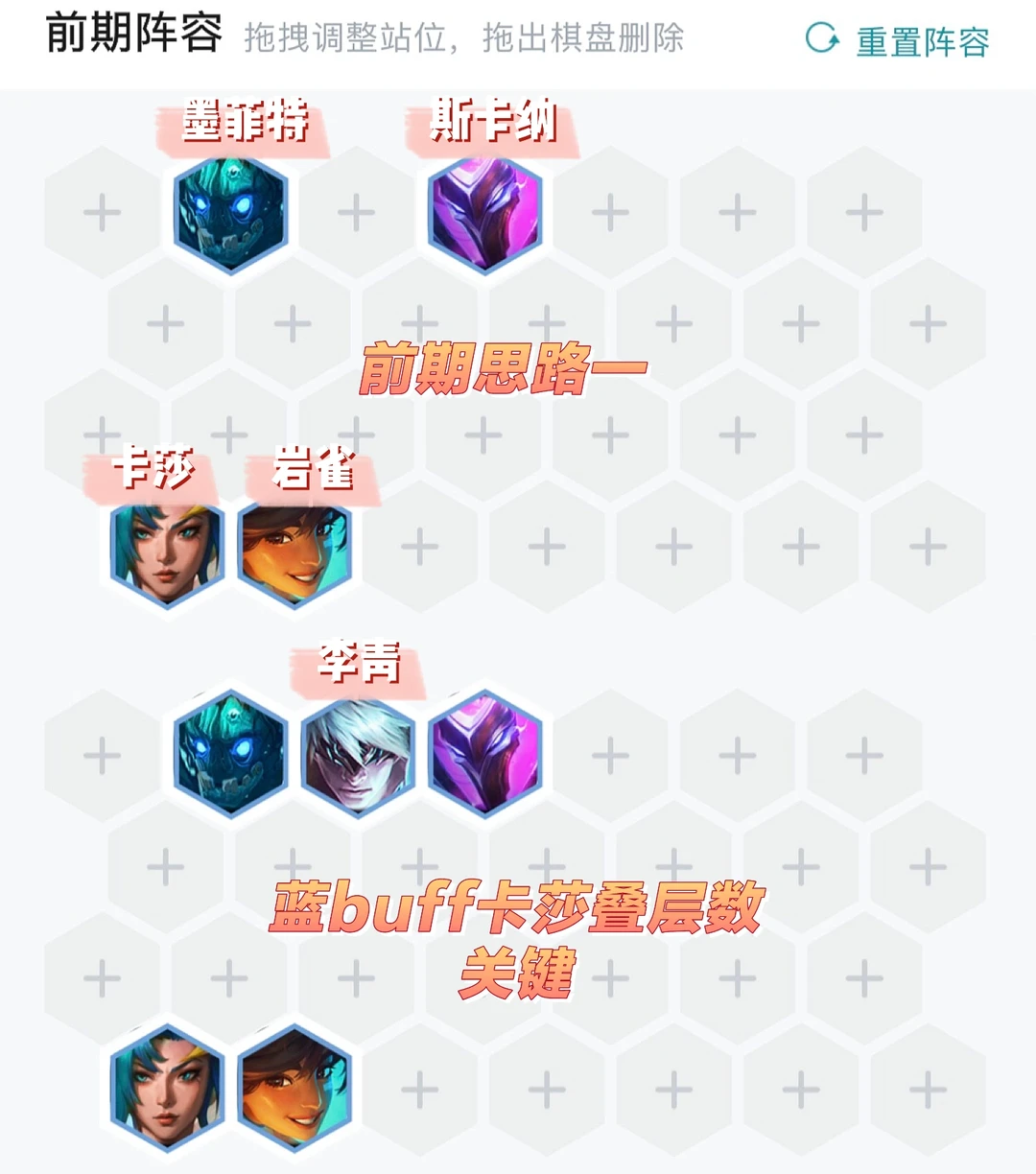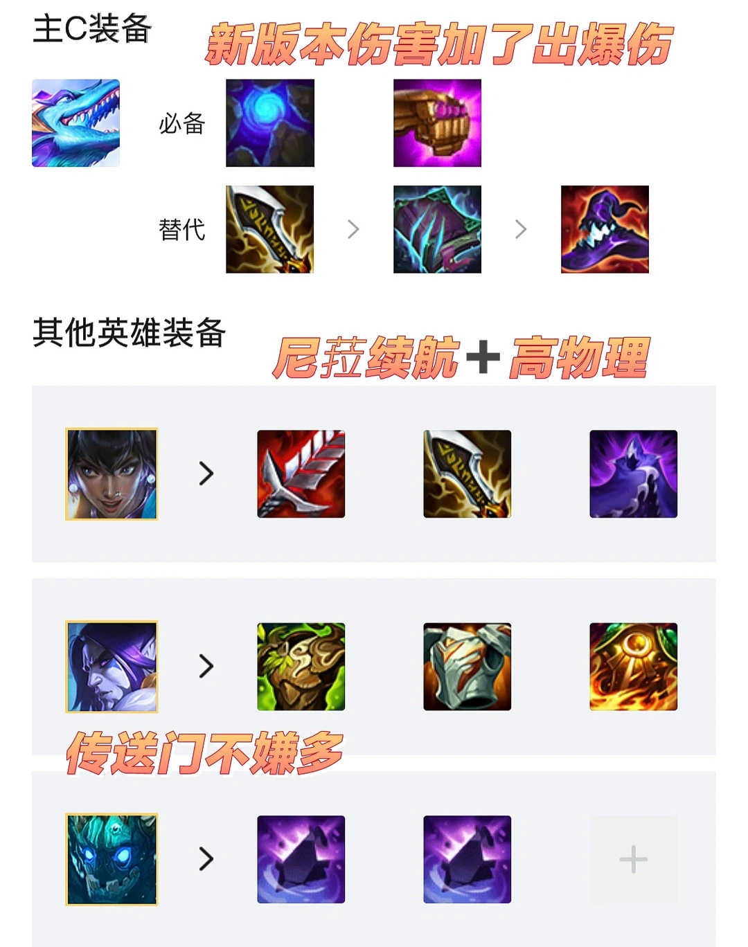 这套阵容上限在于刷碧波龙奖励的速度和符文,前期蓝BUFF和前排质量是非常关键的第一步。