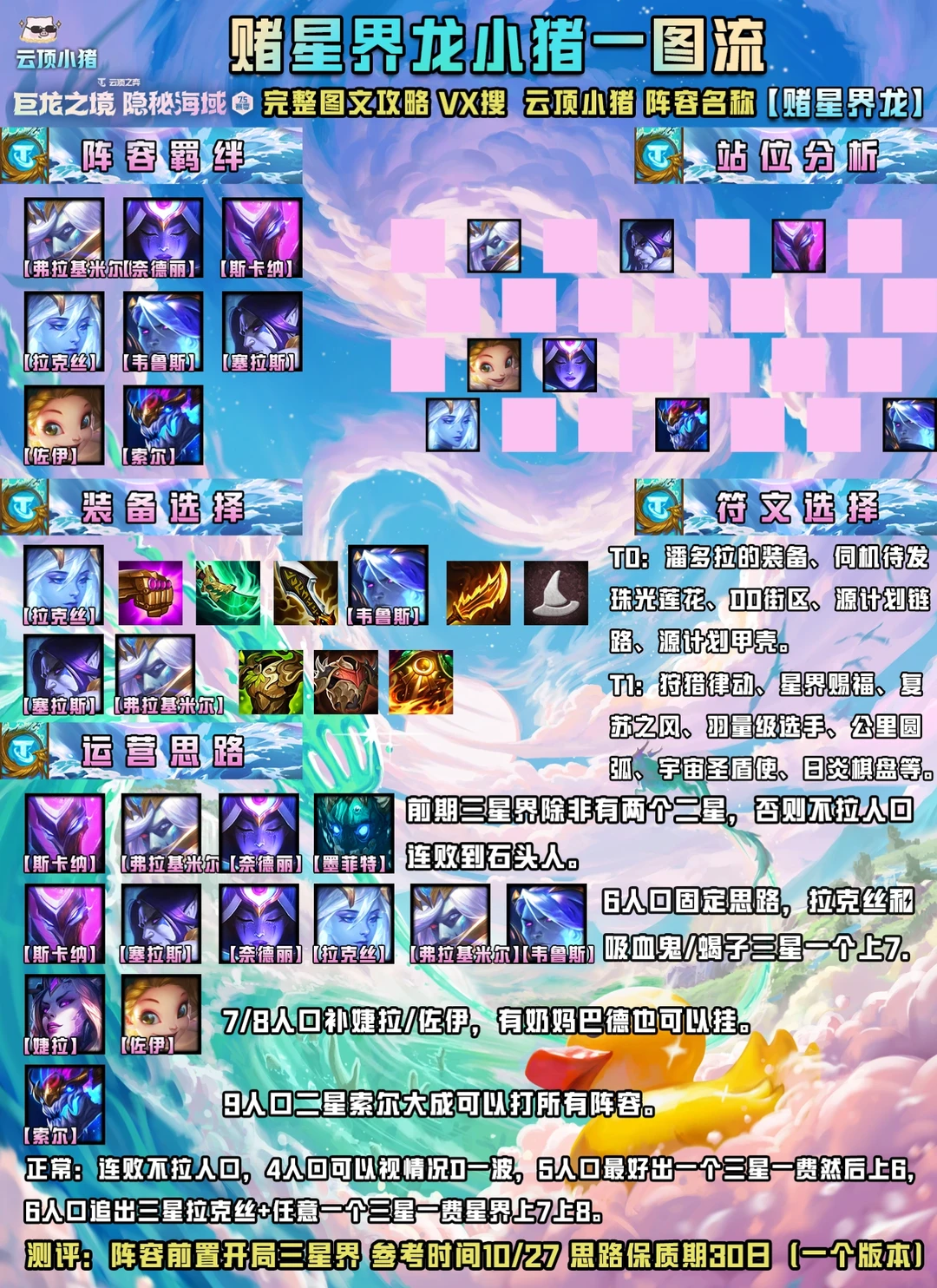 [哇R]今天给大家推荐一套赛季初就有的赌星界龙玩法,在没有特别大成的情况下,除了龙神九五,其他阵容也不是很虚,吃分能力极强。