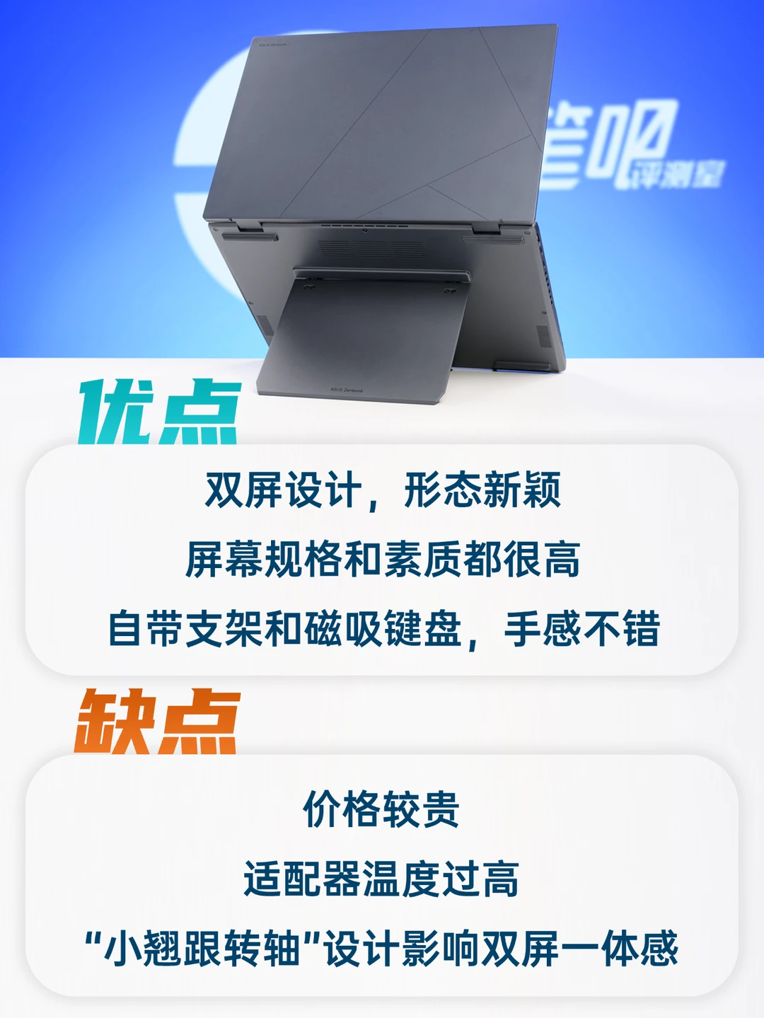 今天我们的主角是华硕灵耀14 双屏,它的机身重量和“标压轻薄本”类似,拥有两块高规格OLED屏,非常罕见的产品。[得意R]