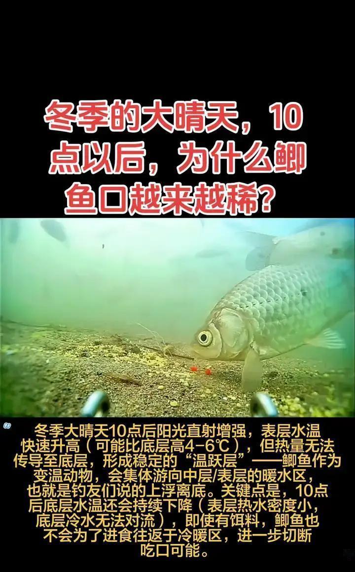 冬天晴天出去钓鱼,十点前还行,一到十点后,鲫鱼就没口了。你说怪不怪? 问题就