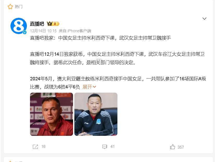 🔥“女足换帅如走马灯,常卫魏是救星还是背锅侠?”🤔米利西奇下课成定局,常卫魏成救火热门。但俱乐部成功≠国家队成功,这换帅是破局还是乱投医?💥别盲目崇拜俱乐部战绩!国家队无外援,需教练能激发本土潜力,打造成熟战术。选帅得看真本事,而非名气!💡中国女足教练席换人如换衣,却难见起色。常卫魏有实力,但能否在国家队复制辉煌?足协别再病急乱投医,得找真正懂女足、能扎根的人!你们看好常卫魏吗?他能否带女足崛起?评论区见!👀💬