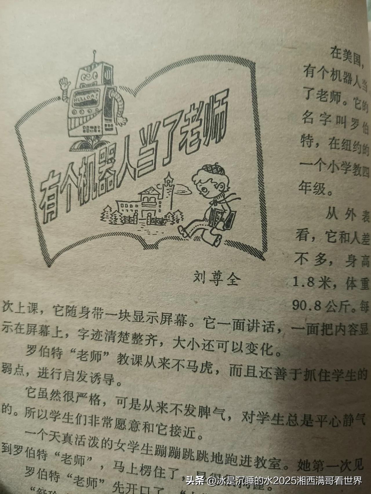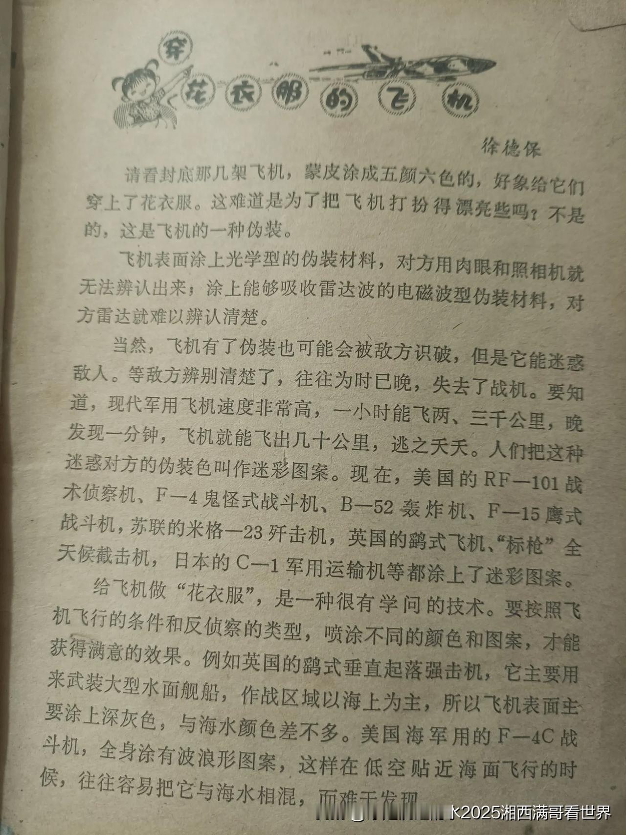 在家整理书籍杂志,顺便给大家分享一组1980年第8期《我们爱科学》的封面、封底以及部分精彩内容的图片。这是我读小学时期的宝贝,当时学校开展读书看报发展业余爱好活动,我就订阅了《我们爱科学》,这个习惯延续到今天。 封面是潜水员身穿潜泳服装背着氧气瓶到五彩斑斓的有红色珊瑚礁的浅海里观察各类热带鱼类活动的照片;封二是中国当时向太平洋海域成功发射洲际运载火箭;封底是当时世界各国空军最先进的军机靓图。作为军迷,我现在可以轻松识别出美国的F-4C“鬼怪”战斗机、F-16“战隼”战斗机、英国的“鹞”式垂直/短距起降战斗机、美国的F-111“土豚”变后掠翼战斗轰炸机以及日本的C-1喷气式军用运输机的精彩靓图。在1980年,这些都是最先进的战机,代表了美国、英国、日本的发达科技,我们中国还是发展中国家,在航空领域与它们差距巨大。 精彩文章有《到地下街道逛逛》、《观察观察再观察》、《和岩石打交道》、《有个机器人当了老师》、《导弹》等,通俗易懂、图文并茂。到了21世纪的今天,当年的《有个机器人当了老师》成为现实,AI现在深度进入老百姓生活,甚至取代了很多传统行业,更先进的超级人工智能已经是人类文明发展的主要方向。地下大型超市也是司空见惯,网络、电梯、视频通讯等等都得到实现。 科技,是推动人类文明进步的动力。所以,热爱科学还是要从小朋友抓起。 少年科学杂志 爱科学杂志