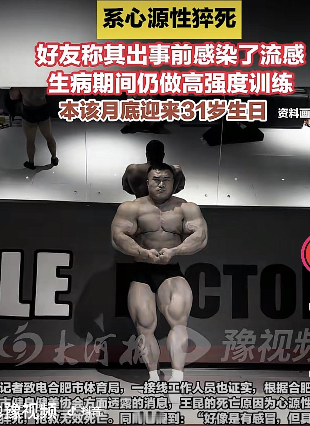 合肥健身协会证实:30岁健身达人王昆系心源性猝死,之前曾感冒! 外人也不知道王昆具体是怎么锻炼的身体,看到他满身都是键子肉,壮如牛,血管在肌肉也是根根分明,凸鼓起的,真的很帅。平时吃饭更是干净到“极致”,鸡肉牛肉全是清水煮。 他从原来的60公斤练到115公斤,相当于330斤!运动量就不说了,这么大体重的增量,得吃下多少头牛,多少只鸡呢? 他不但自已练,而且当高级教练讲课,传授自己的健身技巧,可惜到头,自己没了。看来长寿因素很多,顺应自然,什么事不能过,适可而止,健康没了,拿再多冠军也没用。