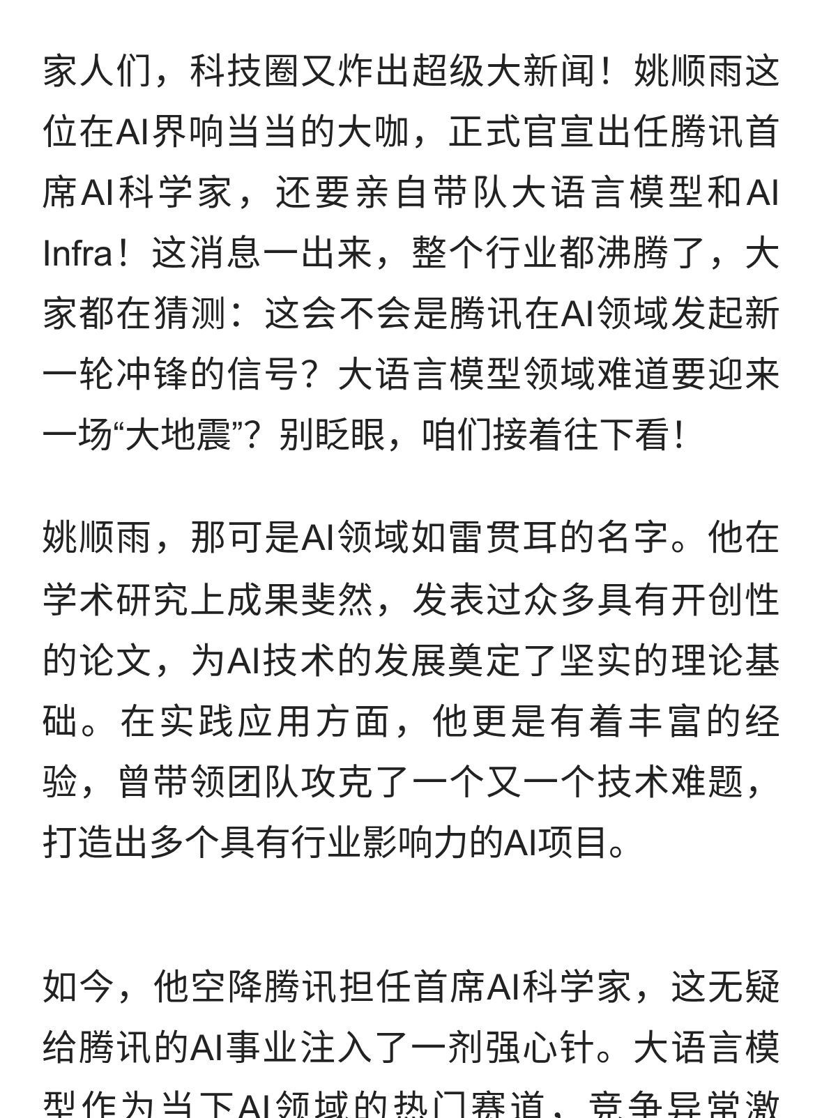 官宣!姚顺雨出任腾讯首席AI科学家