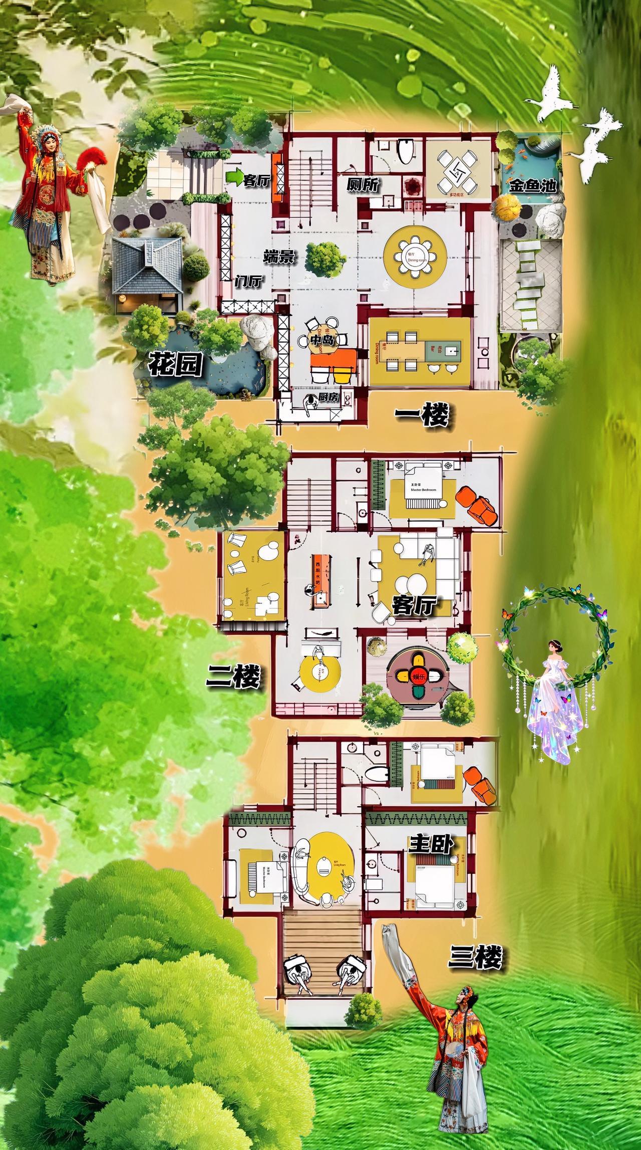男人是家的根,女人是家的魂,450㎡让一个家要幸福的材料,布局语言表达能力太强了,一层吃,二层耍,三层睡大觉,完全就是情商很高,未来可期的自建房! 好美的动线,吃饭也是一种行云流水的流畅,三餐厅怎么看,独一无二!你该怎么看二进院的别墅,前院很勾人,有山有水有亭,邻居眼里乡村美,你欣赏的面子活! 后院的景,让,大伙儿吃饭𣎴积食,借光入窗的阳光,洒满的小院子! 把客厅放二楼,这个布局无论别人怎么评价,最起码我认为,他算户型界一枝独秀! 即使你知识渊博,再这儿显得略懂皮毛。原因有,一是它家有足够多卧室,二是不需太多收纳,三是做动静分明! 二楼留一个卧室更可贵,能喝,能玩,看投影,打麻将,做健身,像一个家庭版的K T V,一个五合一的客厅,少见不多怪! 相当于生活很热情,动线很自然,布局很大方,格局有一丝东方韵味! 三楼没造型,三居室布局真的是情景交融,最泯灭人性的动线,爬楼梯,睡个好觉先运动,没加装个电梯,最悲伤的事儿! 不是断章取义动线,也不是给人上纲上线,给布局扣帽子,这是自建房,最缺考虑的乱象之一。 花园再美艳,你不能天天渡假,我觉的,没和烟火生活共情吗? 最不厚道的是,小厨房,大家知道,大宅最少应该有中西二厨,满足三代人的生活需求! 虽然大胆创新,还是需要接地气,否则费力不讨自建房的好! 把他挂出来,大家互怼一下,否则就很缺德了。 颜值不能凌驾于生活之上!