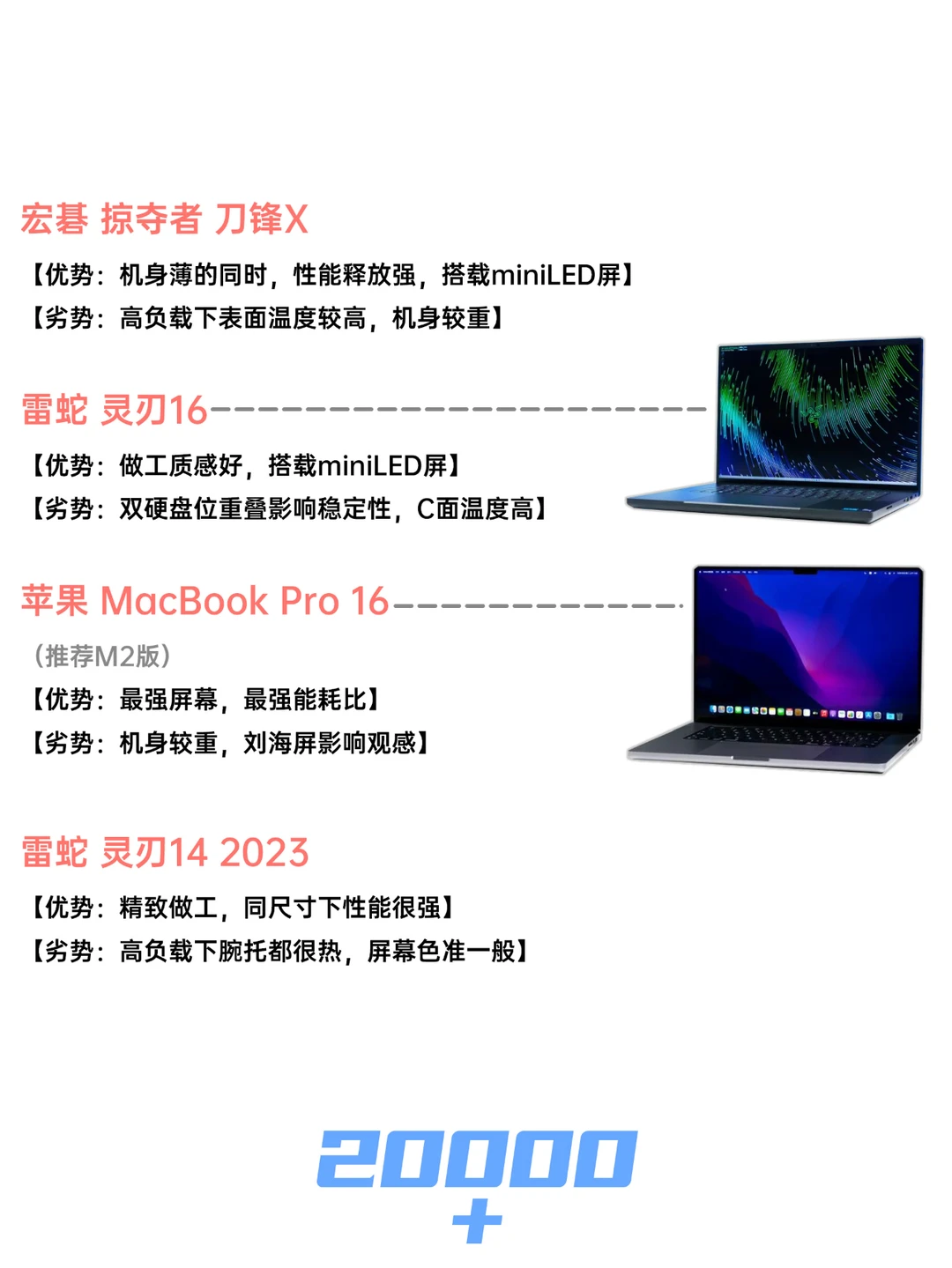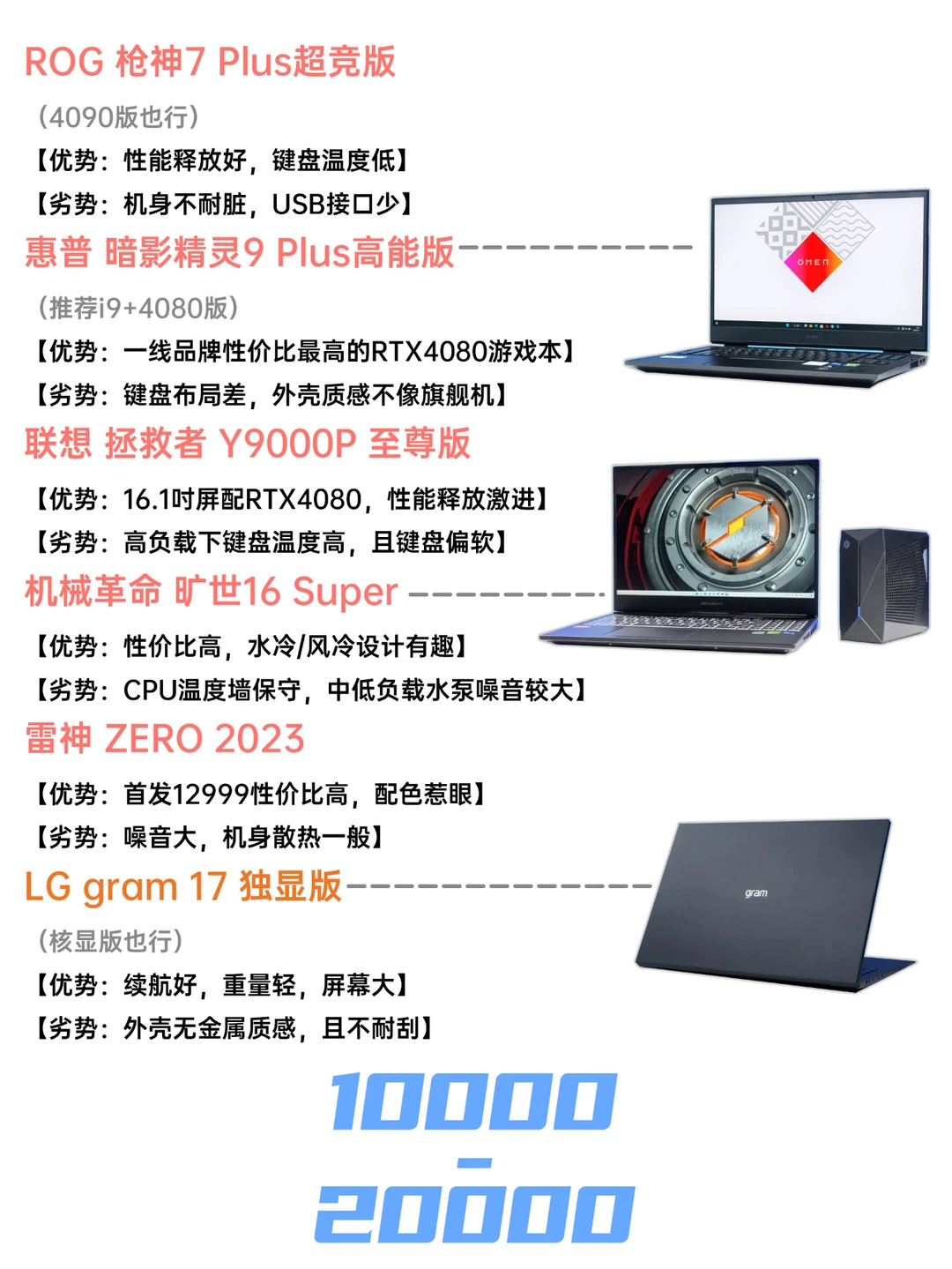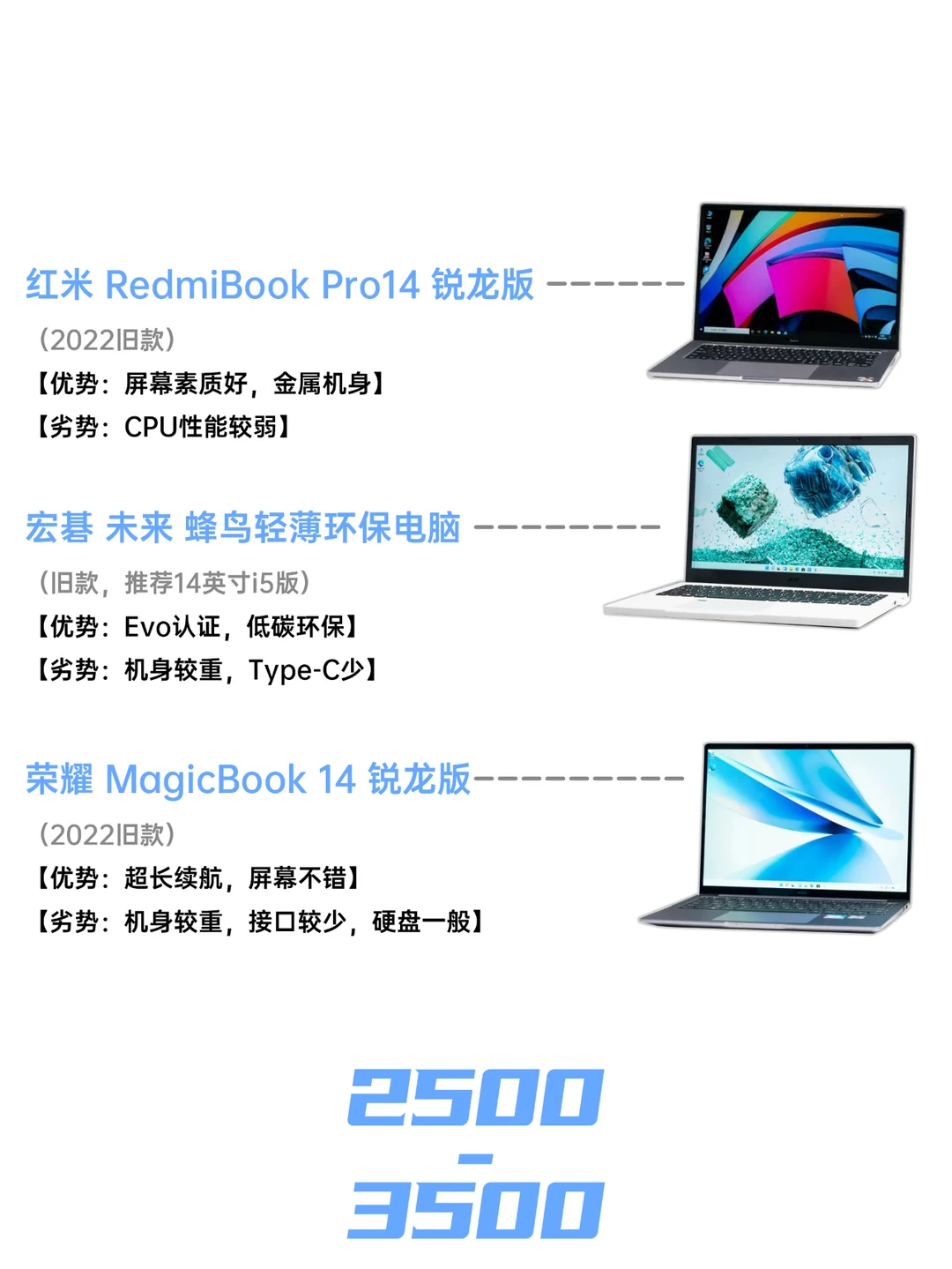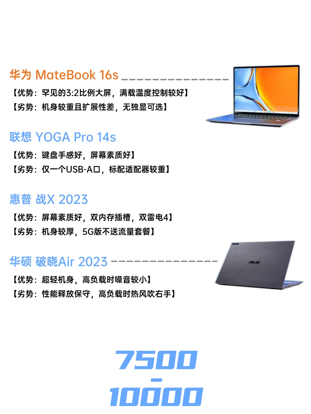 2,🟠黄色为💪万金油笔记本,既轻薄又有性能,但厚度重量不如超薄本,游戏性能也只能玩画质较低的游戏。高端万金油适合平面设计、影视剪辑人群使用。(个别定位复杂的笔记本,例如大屏幕核显本,也会被归纳在这里)