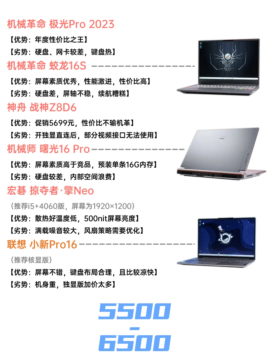 我们推荐的价位段,一般是能接受的价位范畴,例如【机械革命 极光Pro】我推荐6500元以内购入,超出就不是很推荐了。