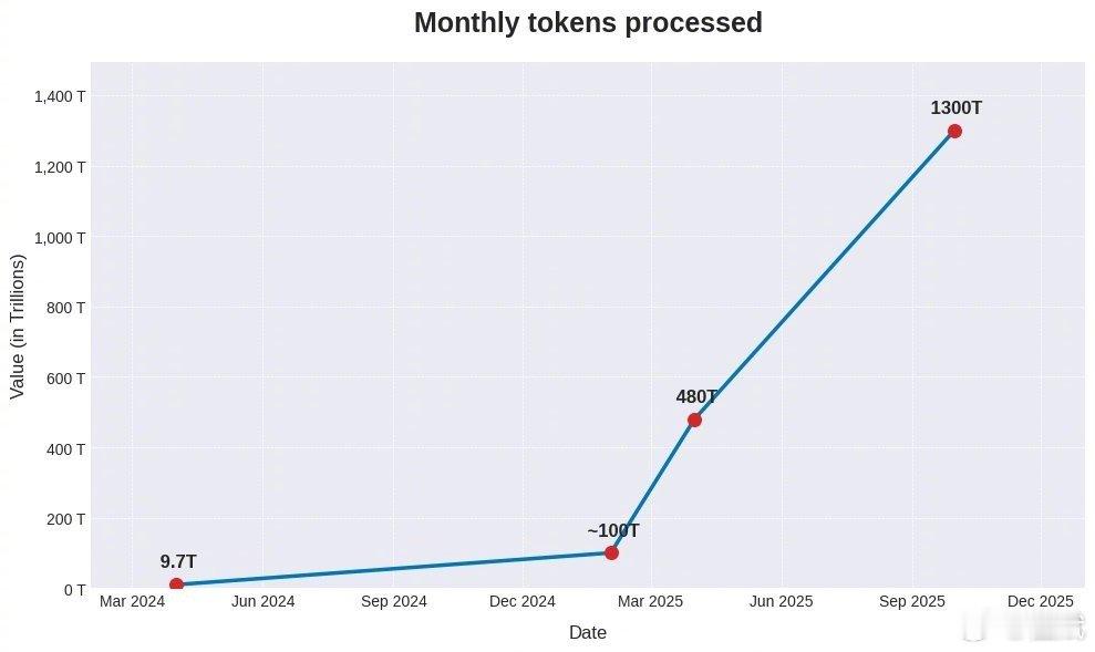 转:一组数据对比:谷歌今年 9 月份处理了超过 1.3 千万亿个 tokens。