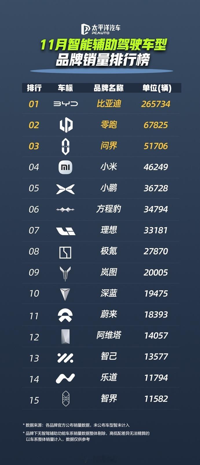 技术竞争才是良性之争 加速普及辅助驾驶 最近,比亚迪公布了搭载天神之眼辅助驾驶系统的车型11月的销售数据,整个月一共卖了311267辆,还在继续加速普及辅助驾驶,一直领着市场走。销量表现亮眼:王朝系列和海洋系列卖了265734辆,方程豹、腾势、仰望这些高端又有个性的品牌表现也挺稳,一起给比亚迪在智能驾驶这块儿搭起了强大的产品阵容。截至2025年11月底,搭载“天神之眼”的车型累计销量突破230万辆,稳居中国辅助驾驶市场首位。持续优化用户体验:下半年以来,比亚迪多次推送大规模OTA更新,涵盖主动安全、行车功能及座舱体验优化,确保用户及时享受最新技术成果,践行“好的技术,人人可享”的理念。市场认可度提升:“天神之眼”以稳定可靠的表现赢得消费者信赖,成为中高端车型热销的关键因素之一,推动智能辅助驾驶从“亮点配置”转变为购车“核心考量”。从230万辆保有量的里程碑,到每日1.5亿公里的数据洪流,比亚迪正以“技术普惠+安全至上”的双轮驱动,重新定义智能驾驶的市场规则。这场由中国车企引领的智驾革命,或将为全球汽车产业提供新的发展范式。