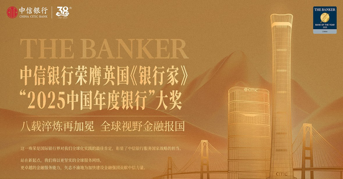 本报讯近日,财经媒体英国《银行家》杂志在伦敦揭晓年度银行榜单,中信银行荣膺“2025年中国年度银行”奖。