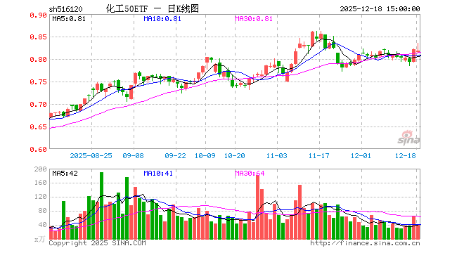 12月18日,化工50ETF(516120)跌0.37%,成交额3358.25万元。当日份额增加500.00万份,最新份额为13.76亿份,近20个交易日份额减少9250.00万份。最新资产净值计算值为11.27亿元。