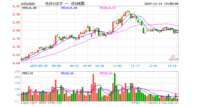 12月18日,光伏50ETF(516880)跌1.63%,成交额1490.94万元。当日份额增加200.00万份,最新份额为26.46亿份,近20个交易日份额增加7000.00万份。最新资产净值计算值为20.72亿元。