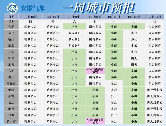 21日(周日):淮河以北和江淮之间北部阴天转多云;江淮之间南部和江南阴天有小雨,局部有雨夹雪或雪。