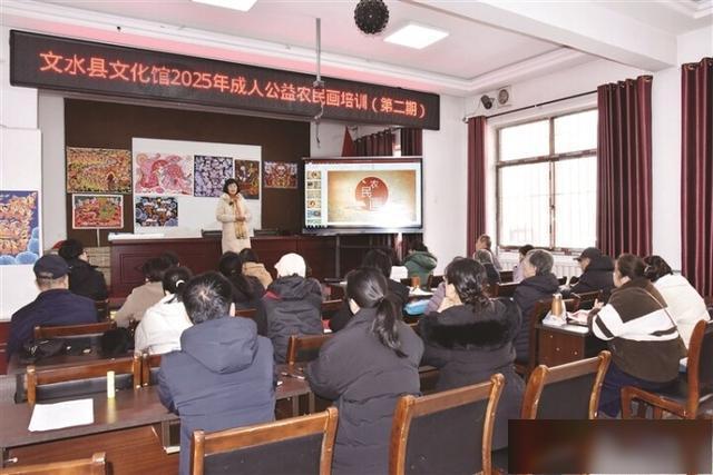 近日,文水县文化馆、县农民书画研究会联手举办的2025年成人公益性农民画培训班开班,来自县内的18至65岁农民画爱好者30余人免费学习技艺,邀请山西省工艺美术农民画艺委会副主任、省农民书画研究会常务理事、忻州市农民画协会副主席、定襄县农民画协会主席张先花任教。在连续15天的培训中,张先花围绕“什么是农民画、农民画题材选择、农民画构图方法、农民画造型方法、农民画用色”五个篇章,结合农民画作品欣赏开展理论讲授和实操辅导。冯增清摄