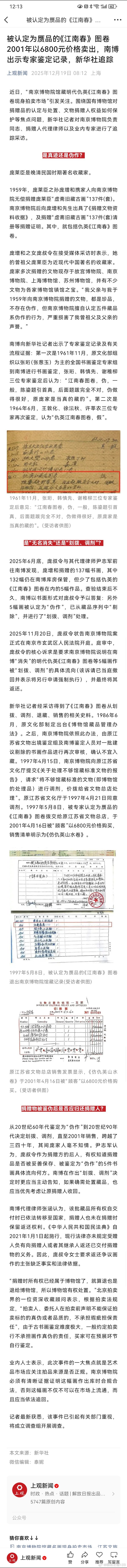记者经采访得到了《江南春》图卷从划拨、调剂、退藏、销售的相关史料。6800元购入,仅仇英的《江南春》起拍价就高达8800万元。真是一本万利的划算买卖。南博2次专家鉴定江南春系伪作