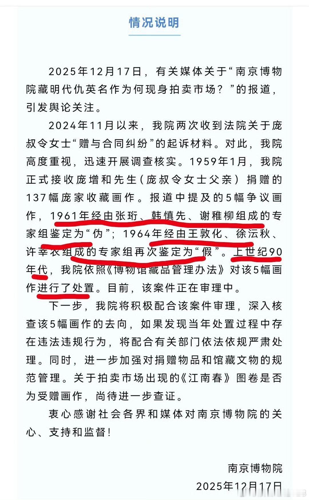 8800万买断了三代人的信任。庞家后人曾无偿捐赠137件传家宝给南京博物院,庞