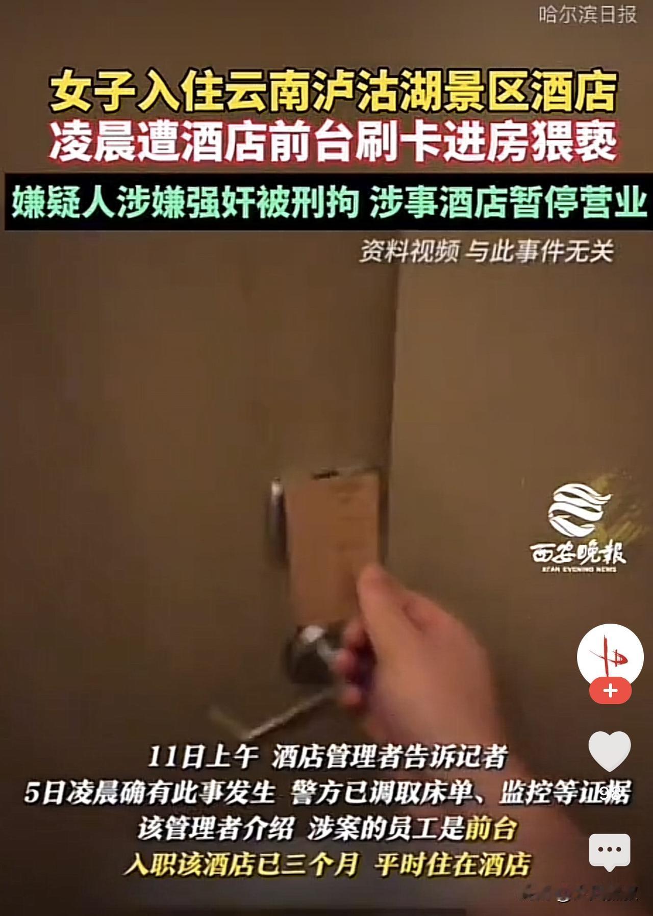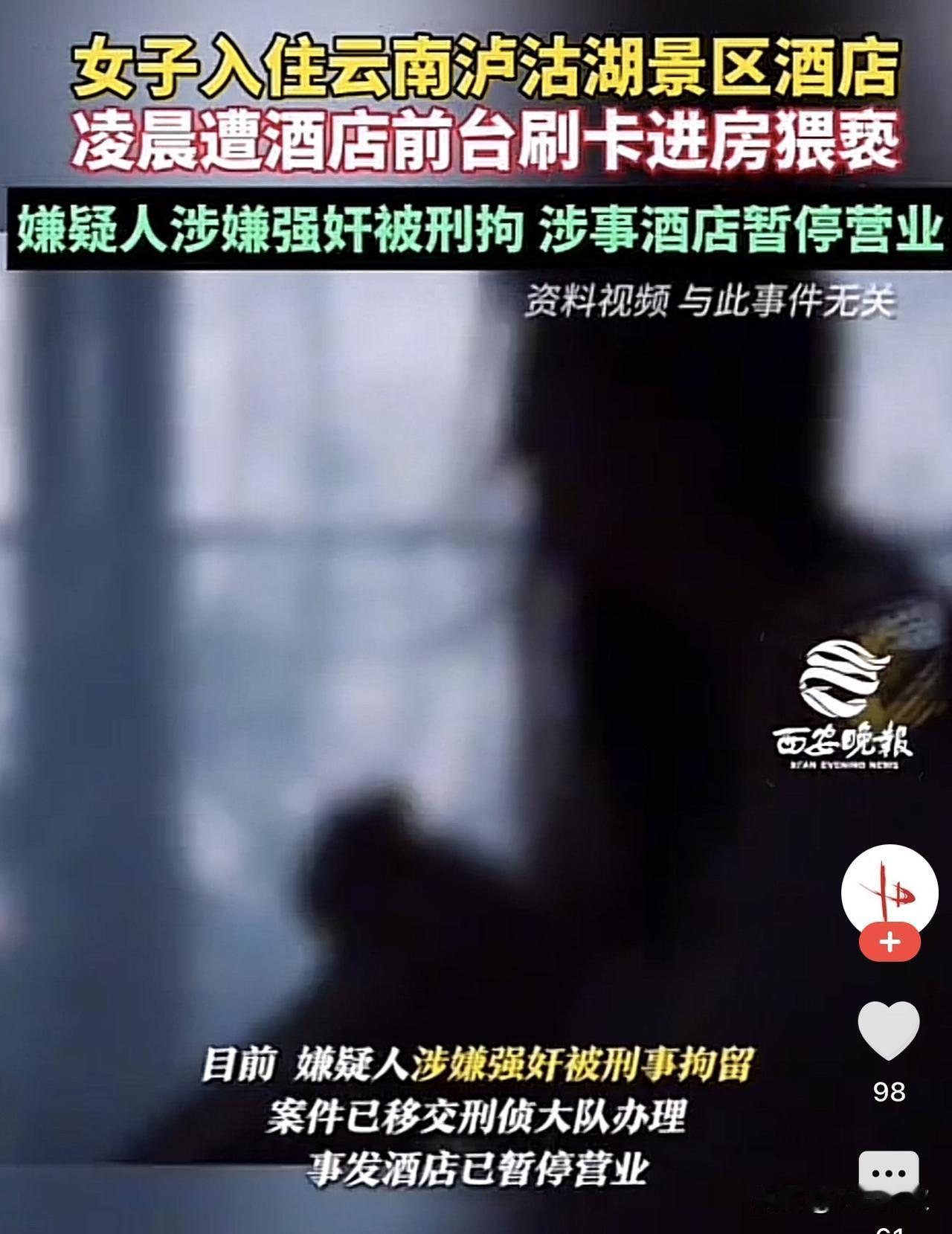 云南丽江,一女游客到当地旅游后,入住了当地一家酒店,结果凌晨时分,女游客睡意朦胧中感觉有人在触碰自己,事后女子立刻报了警,经调查,原来闯入女游客房间的不是外人,而是这个酒店的前台,事发后,警方以涉嫌性侵为由对涉事男子采取了刑事措施,可让女游客不满的是,酒店的道歉态度却很敷衍。 据这名女游客刘女士(化名)介绍,自己来当地游玩,入住了涉事酒店两天,第二天凌晨的时候,有人拿着房卡刷开了自己的房间,对自己实施了猥亵。 事后刘女士就选择了报警求助,警方调查后发现,涉事嫌疑人竟然是酒店的前台,前台拿着酒店的总房卡刷开了刘女士的房门,对其实施了犯罪行为。 据酒店管理人员表示,这个前台来工作3个月了,平时住酒店,酒店工作人员都有总卡,是因为要随时帮助顾客解决问题,但是没有客人允许,是不得擅自进入房间的。 因事后酒店只是向刘女士发送了一条道歉微信,并没有正式道歉,对此刘女士很是不满意。 事发后,有网友就说,估计这个前台不是第一次实施违法行为了,这一次被抓只是受害人察觉到了,那些没察觉到的受害人可能现在都不知道自己被侵犯了。 还有网友说,女孩单独住酒店,一定要反锁房门,因为你不知道的是,酒店保洁、保安甚至是前台,有没有想要对你有非分之想,但凡有人有这样的想法,你就很危险。 其实,警方以涉嫌性侵为由将前台男服务员刑拘,但是,他到底是打算实施性侵还是只是要猥亵,目前还不得而知,毕竟,如果刘女士睡得很沉,不排除嫌疑人有性侵的想法。 但是,这里有一个问题,就是嫌疑人如果只供述自己有威胁的行为,没有打算实施性 侵的行为,那么,只能按照强制猥 亵罪处罚,而不能按照QJ罪处罚。 这是因为,虽然嫌疑人已经有了触碰受害人身体的行为,没有进一步的行为,在这种情况下,其行为既是强制猥 亵罪的既遂,也是QJ罪的准备阶段未遂,原则上来说,应当按照严重的犯罪即QJ罪未遂处理。 但是,由于刑事诉讼法要求有利于嫌疑人、被告人的原则,就意味着,如果没有其他强有力的证据,证明嫌疑人有实施性侵的打算,那么,就无法按照严重的这个罪名处理,而只能按照猥亵处理。 当然,不管按照那个罪处罚,嫌疑人都要被判刑,一般而言都要面临5年以下有期徒刑的处罚。 对酒店来说,其实酒店也有过错,其工作人员对顾客实施侵犯,显然,酒店是有责任的。 民法典第一千一百九十一条,用人单位的工作人员因执行工作任务造成他人损害的,由用人单位承担侵权责任。用人单位承担侵权责任后,可以向有故意或者重大过失的工作人员追偿。 虽然这个前台不一定是在执行职务期间,但是却利用了职务便利条件,那么,酒店没有对其工作人员尽到监督、管理的职责,甚至说酒店的管理本身就存在较大的问题,在这种情况下,酒店是需要向顾客承担赔偿责任的,在承担了之后,再要求嫌疑人赔偿。 说一千道一万,一个人外出,尤其是独身女性,还是建议以安全为主,不管是入住酒店也好,外出吃饭游玩也罢,一定要提高警惕。 对此,你对本案有什么看法? —————————— 关注我,带你评析法律热点,关注冷暖人生。 文章原创,抄袭必究